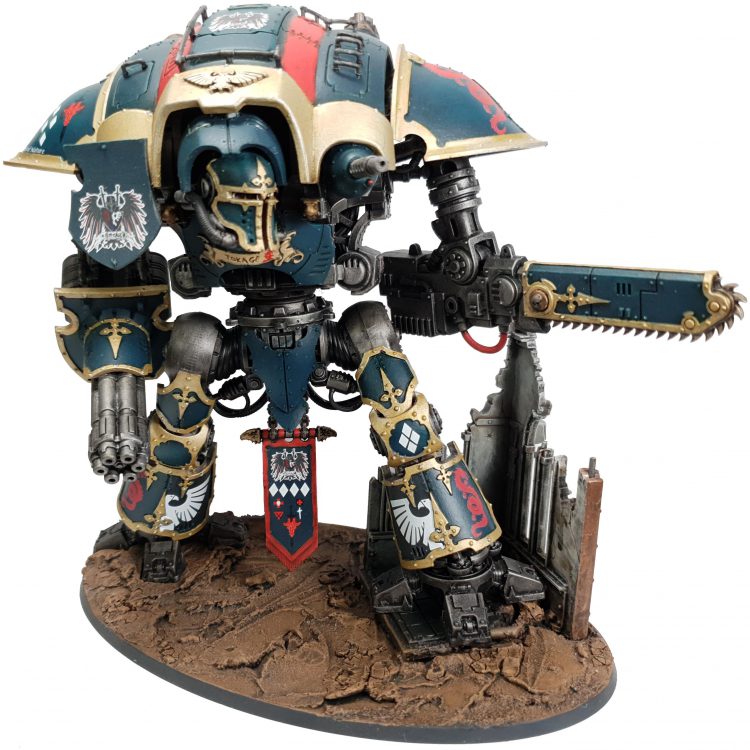 The Magaera is a tougher Questoris, with a better chance to self repair and an anti-armourbane shield. They also explode slightly easier than other knights, so self-sacrifice taking down a horde of enemies is their likely end. With no options at 460 points, it ends up just slightly more expensive than a tooled up Questoris. As a ranged/melee hybrid it’s a Marine killer, with all of its guns and melee weapons either bypassing armour or having a good chance to do so.