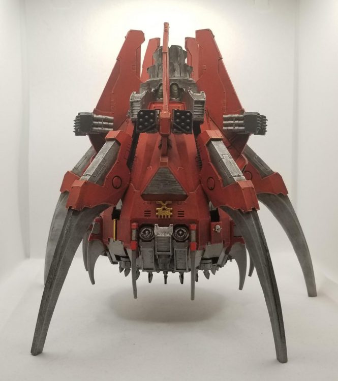 Credit: Robert "TheChirurgeon" JonesA bigger Dreadclaw with 8 hull points, a capacity of 22, and a weapon (kind of) for 235 points. It only has a 14” move, so gets you marginally less far up the board. It can carry walkers up to Leviathans and Deredeos. It can also carry even the biggest Primarchs.