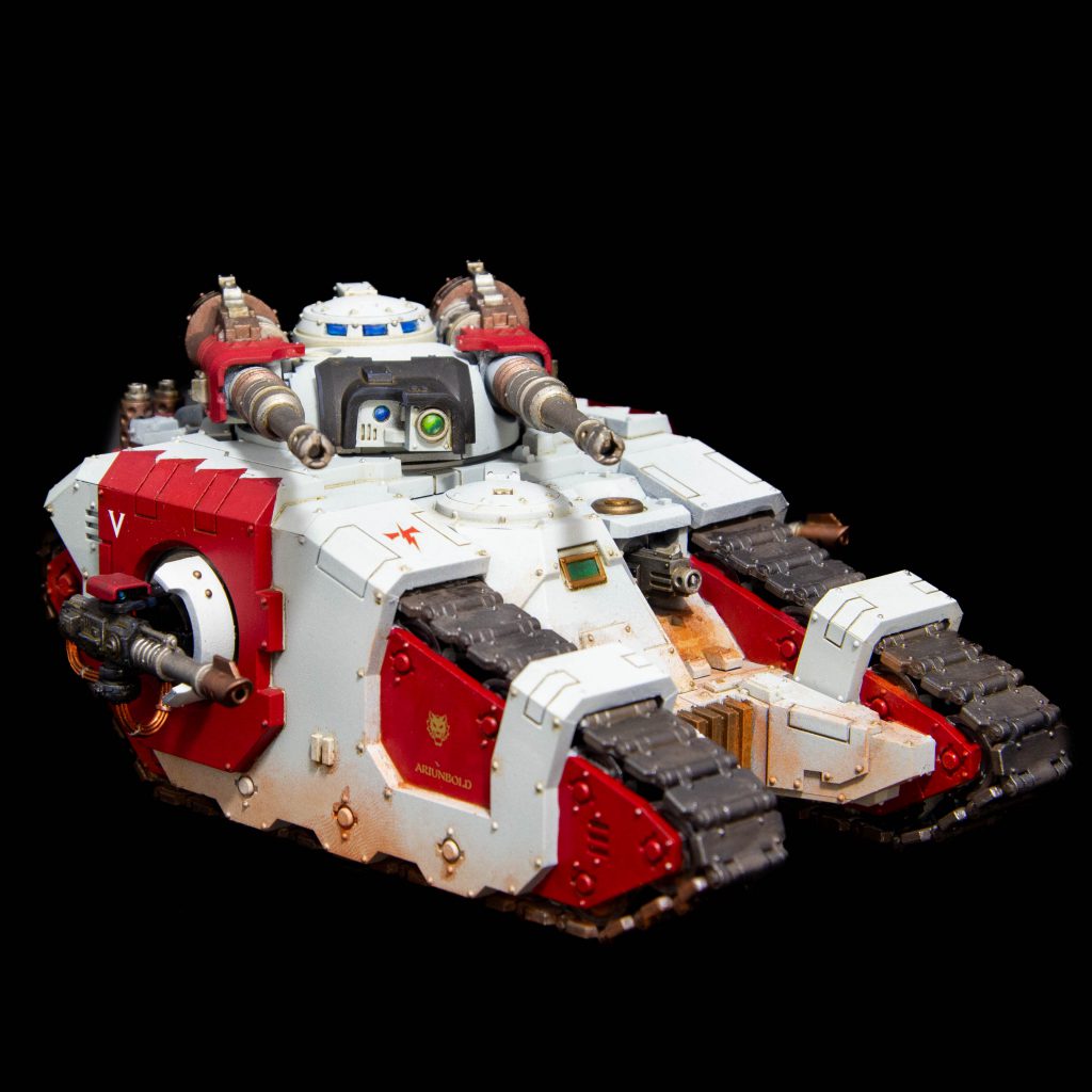 White Scars Land Raider. Credit: SoggyThe remains the same AV14 assault transport we all know for 265 points. 10” move and room inside for 12 models in power armour, 6 Terminators or 3 Saturnines. It now has 8 hull points and is considerably tougher than before, thanks to the changes to how vehicles are damaged. Auto-repair 5+ is ok but you really don’t want to spend a turn pinned, so there probably ought to be a Techmarine near your land raider.