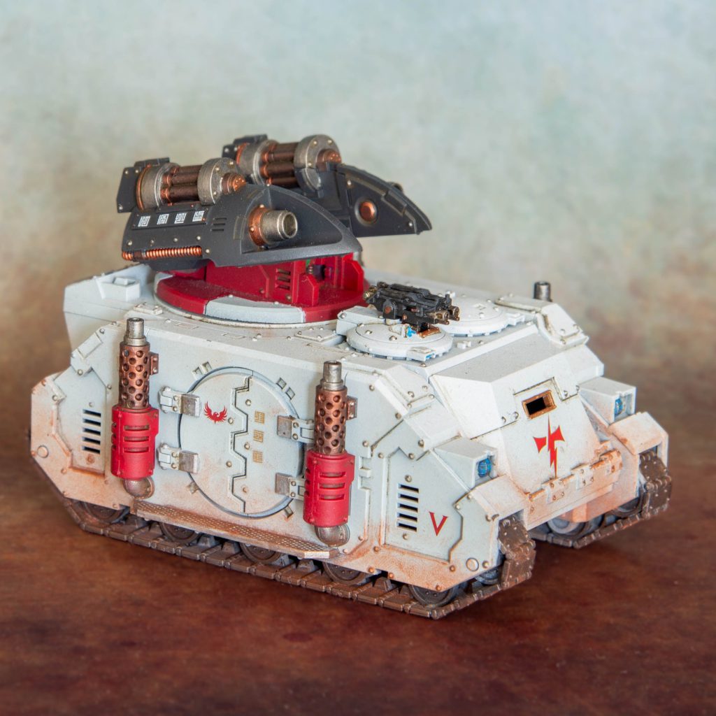 It stands apart from all other Legion Armour with AV14 all round and 10 Hull points. Most importantly it’s Stable, meaning it can fire all its guns at different targets without snap firing and they always count as stationary, benefiting from the Heavy bonuses. It’s one of the slowest Astartes vehicles though, with only 8” of movement.