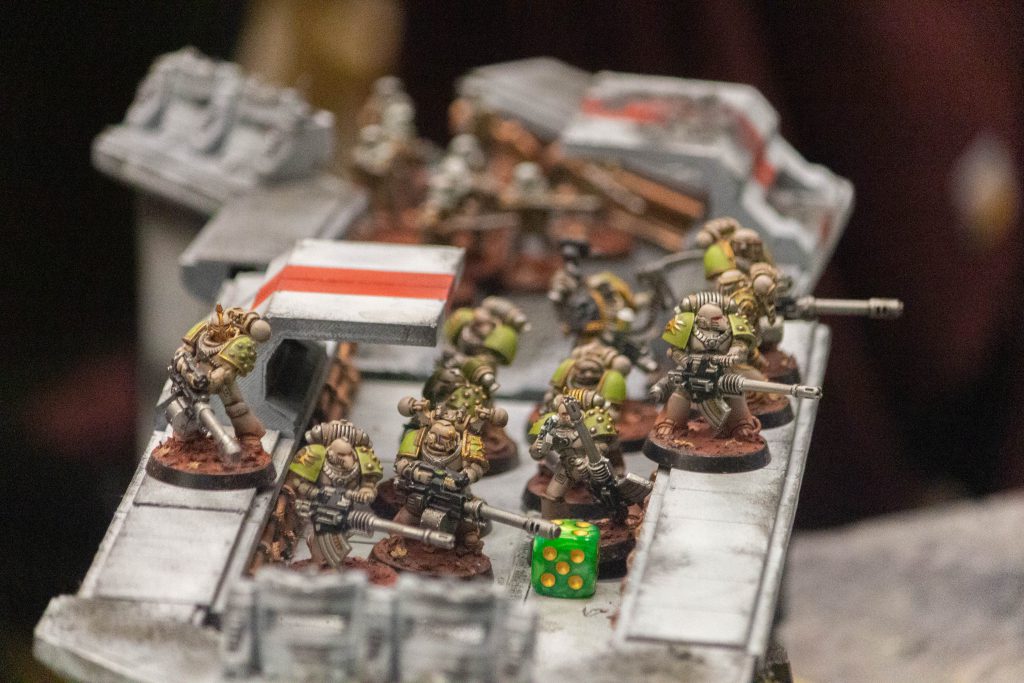 Arioch Tabris of the Blood Angels stabbed a filthy Predator through the vision slit with his Paragon blade, Astrael, while Captain Escalus of the Sons of Horus killed his third Warlord in three successive battles. Preator Astraleus of the 7th used the Best Defence to charge into the bodyguard of the 8th Legion’s Mashuga the Devourer, Mistress of the Bloodred Throne, protecting a vulnerable squad of Templar Brethren. Meanwhile a squad of Huscarls deep strikes nearly felled the Titan Child of Hope with chainfists and fury.