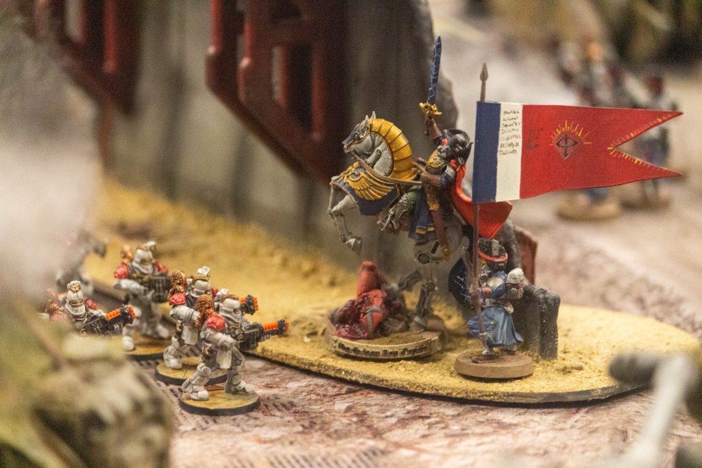 In the ruins of Crescent City, the Ultramarine Tank Invictus Ultima, following the footstops of Astral Wolf, smashing its way through the Iron Warriors line. A few kilometres away, a lone Salamanders Praetor punched through the bodyguard of the Militia Commander named "Napoleon," taking four entire turns to vanquish his foes, as the stubbornness of the Francian regiment held true even in death.