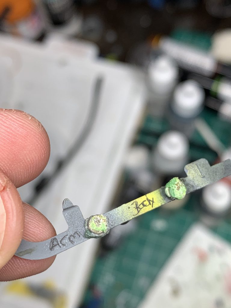Magnets!Sometimes though even a permanent marker rubs off. I don’t know why, maybe the metal is too slick or maybe magnetic ions repel Sharpie particles, get off my back Mom, I just know sometimes it happens. But even in this case, all hope is not yet lost. Take one of your magnets, preferably a larger one, and glue it to the top of your hobby toolkit or something. It doesn’t matter which side up you place it, what matters is now it is fixed with one polarity up. Any time you need to put magnets into something, attach both of them them to your fixed magnet. Put one on those magnets into one part right side up and the other into the matching part upside down. I’m embarrassed to say how many years I had been building models before I learned about this. You can go one step further than this, and make a magnet stick. Get an old piece of sprue or something similar and glue two magnets to it, with different polarities facing out. Now pick which polarity will be “the body” and which will be “the arm” and mark this on the sprue. This way every magnet you install from now on will be interchangeable.