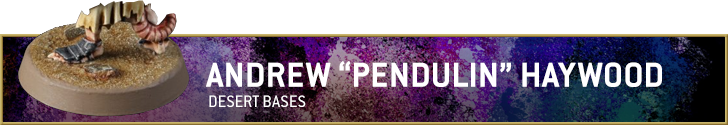 This gives you a lot of freedom to experiment! You can go for the plain, empty wasteland style, or use scrub bushes and trees, and a wide range of colours. Below are a number of techniques our authors use to create their own desert bases - you can try using them, or take them as inspiration for your own.