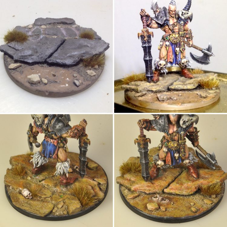 There are also tons of ways of spicing up this style of base. Tiny grass tufts, skulls, or spare weapons scattered about will all make these bases stand out even more. Maybe add tiny ponds, swamps, or putrid green bile-pools. The sky's the limit! Well, the desert is, but still.