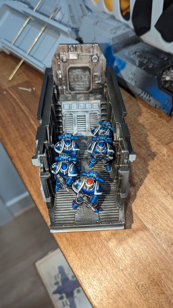 Credit: Kevin Stillman4. For the bottom front fuselage, you have to put in the two ladders, and an internal wall. I painted up the bottom front fuselage as well, and put in a small squad of Space Marines in there. I also added in two holes to pin into the bottom rear fuselage.