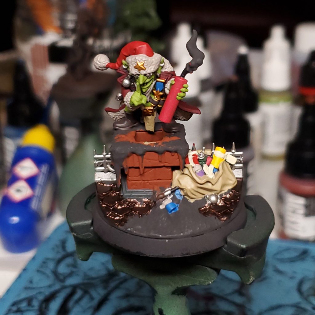 So after all that effort all we have left is to varnish and apply a couple of coats of black legion to the rim of the base. (The molded design means that you need to be super careful with this to avoid potentially having black on the roof or snow.) Congratulations are in order for anyone who managed to read the entirety of this article without going mad in the way it sent me while writing it, laying out everything I did on the model seems frankly absurd when looked at all together and I was keeping things simple, hats off to the real painters who did this guy to the level of detail the Eavy Metal painters did...