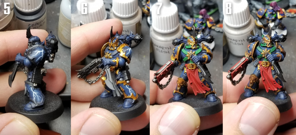 - Paint metallics with Chainmail (AP Plate Metal) and Retributor Armor
