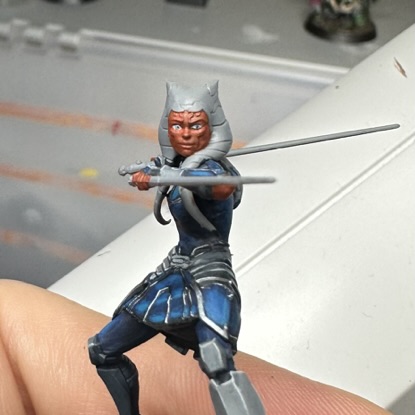 Who gave you eyes like that, said you could keep them. Credit: Raf CorderoOne of Ahsoka's defining features is her blue eyes, so I figured I'd take a stab at painting irises. There was no secret trick, just careful dotting with my smallest brushes. It's easy enough to paint over and try again until it looks ok.