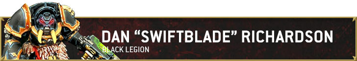 Credit: Dan "Swiftblade" RichardsonThat’s all I’ve got for how I paint my Black Legion stuff, folks! Painting Black Legion Chaos Marines may seem daunting, especially if edge highlighting isn’t your strong suit, but a good looking Black Legion model looks menacing as hell on the tabletop and can be a lot of fun to do.