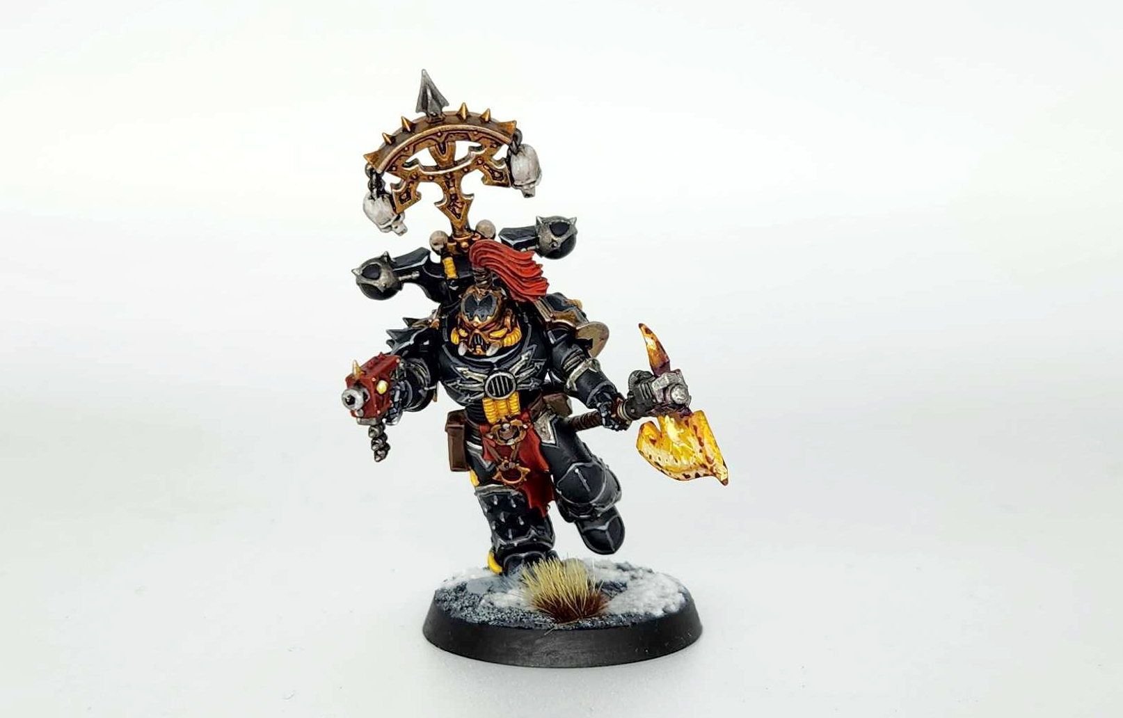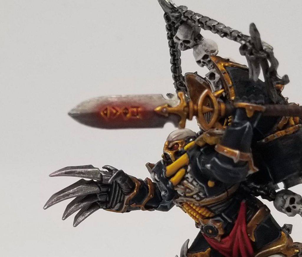 Haarken has a cool model but ultimately he's not super different from any other Black Legion model when it comes to painting him - he just has more details and skulls than you'd normally see. There are a couple of notable areas here, though. The first is Haarken's spear, the Helspear:
