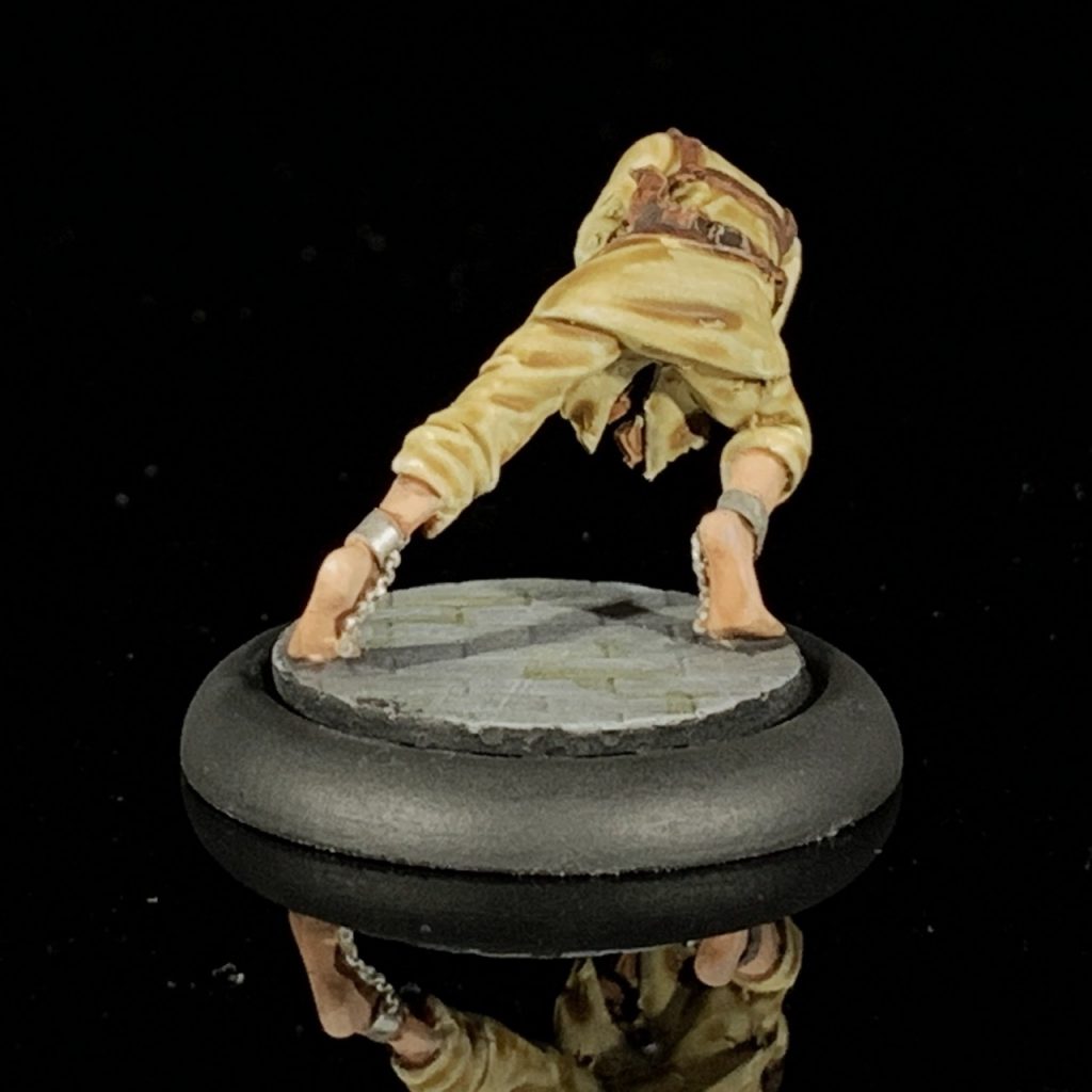 The Warden is a miniature oozing with menace and possibly one of my favourites from the range. I took a similar approach for the flesh here, but started with Khardic and stopped one highlight earlier. I figured the warden gets out a little more so he couldn't be quite as pale as his captives. I also took a similar approach for his shirt, but skipped the final Ivory highlight as I wanted his entire look to be dingier.