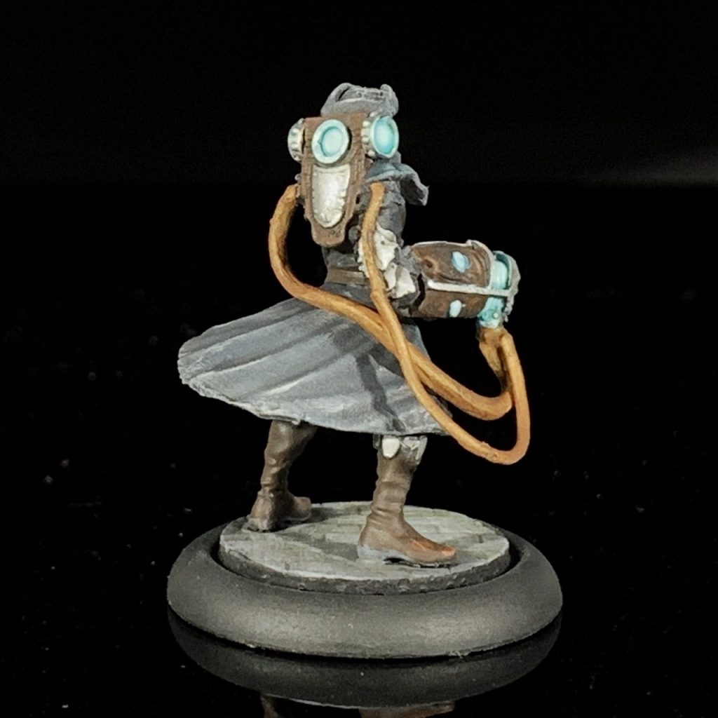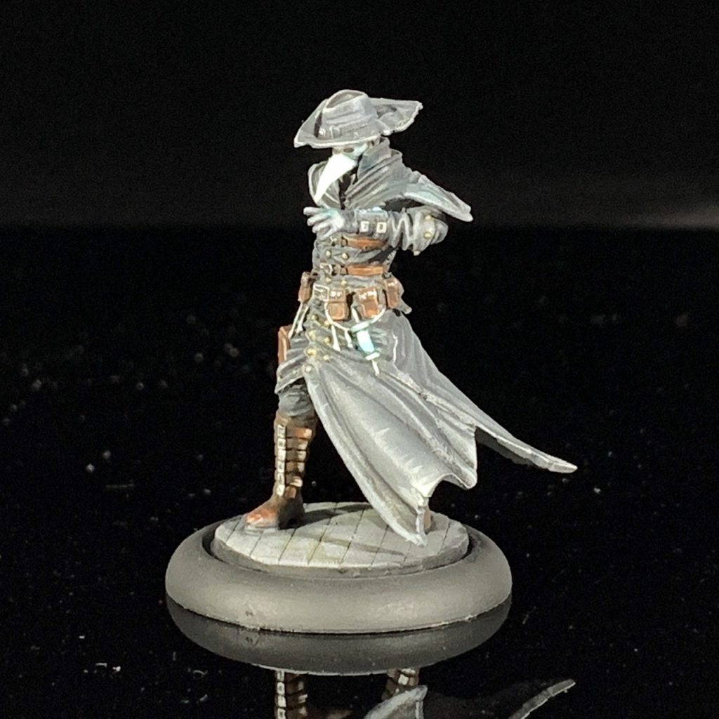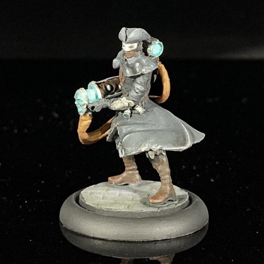 For the blacks I worked up from VMC German Grey through to VMC Deck Tan with intermediate washes of Drakenhoff Nightshade to knock any highlights back and tie the layers together. Despite a fairly limited palette, there was lots of detail to pick out here and it's absolutely worth doing as it really makes the model pop. I brought in an extra metallic with Scale75 Necro Gold making an appearance for the buttons on the Plague Doctor and Scale75 Victorian Brass making an appearance for the Doctor of the Arsenal.