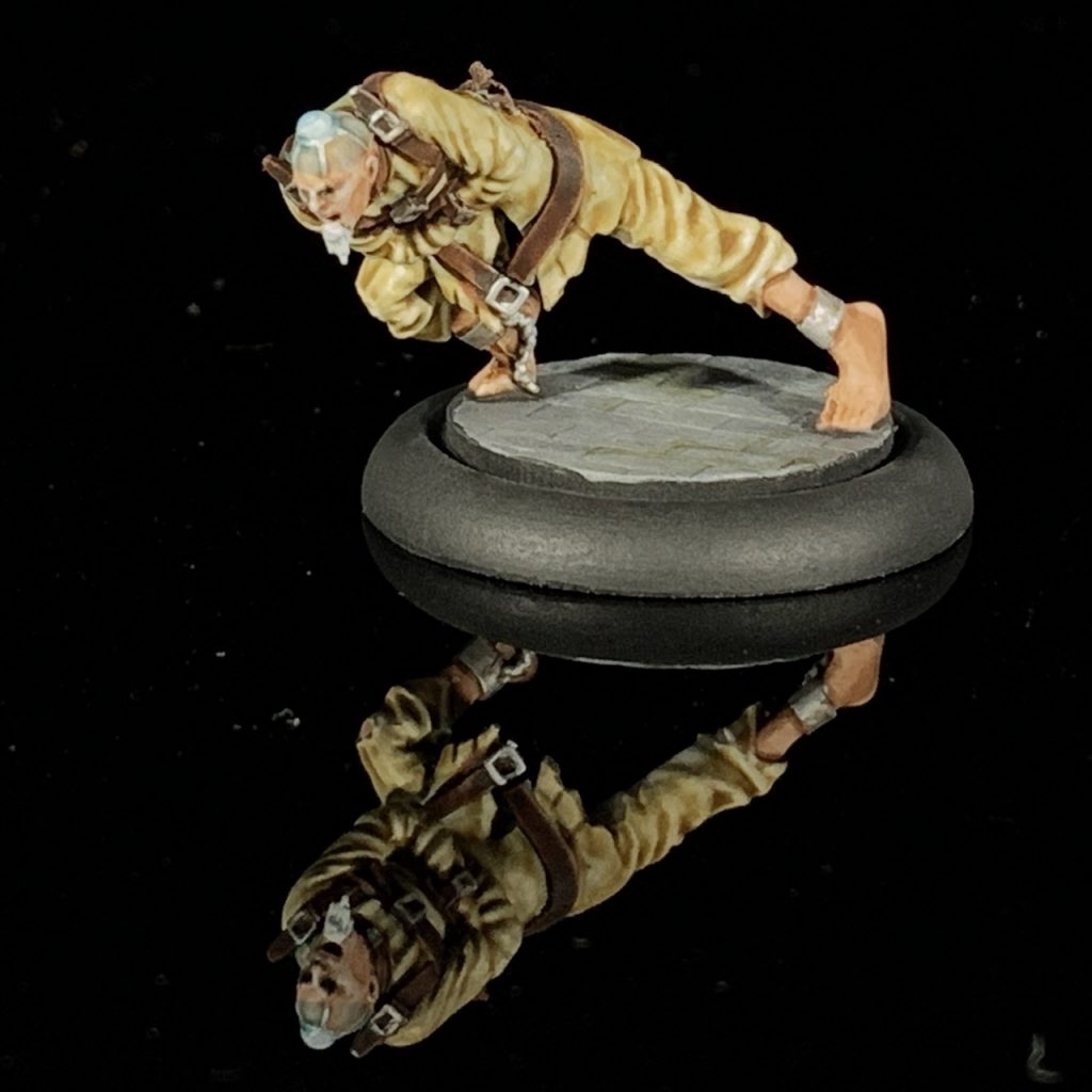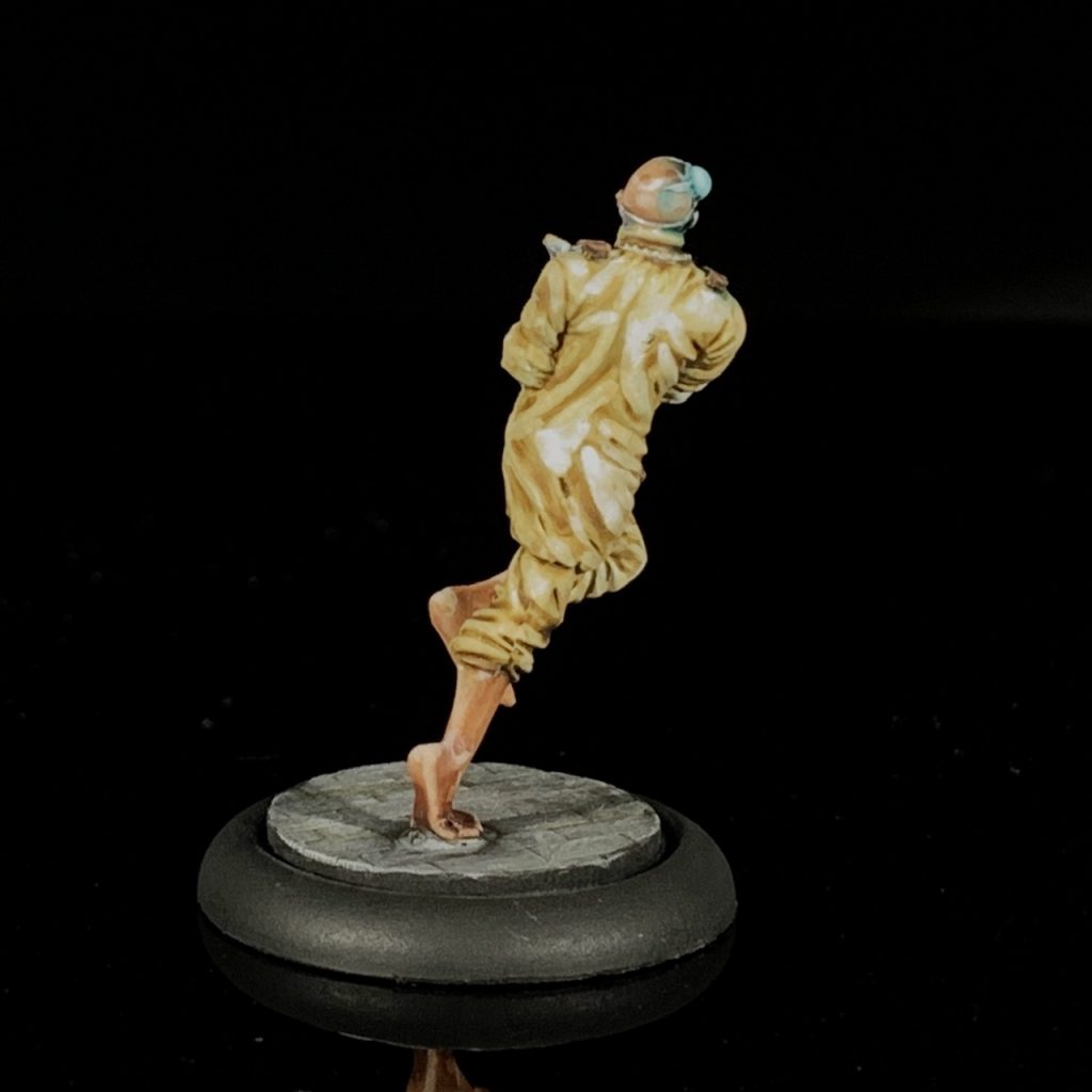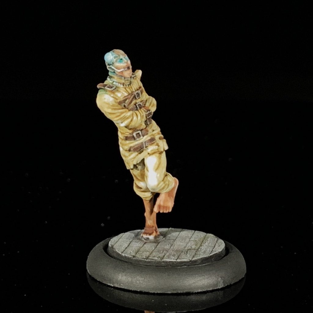 For the jackets, I wanted worn and dirty canvas or heavy cloth. I started with a layer of VMC Ivory, and over this added Skeleton Horde Contrast. This stuff honestly does a huge amount of heavy lifting! Once it was dried, I went back and picked out a couple of the highest points with VMC Ivory and that was pretty much it for the jackets.