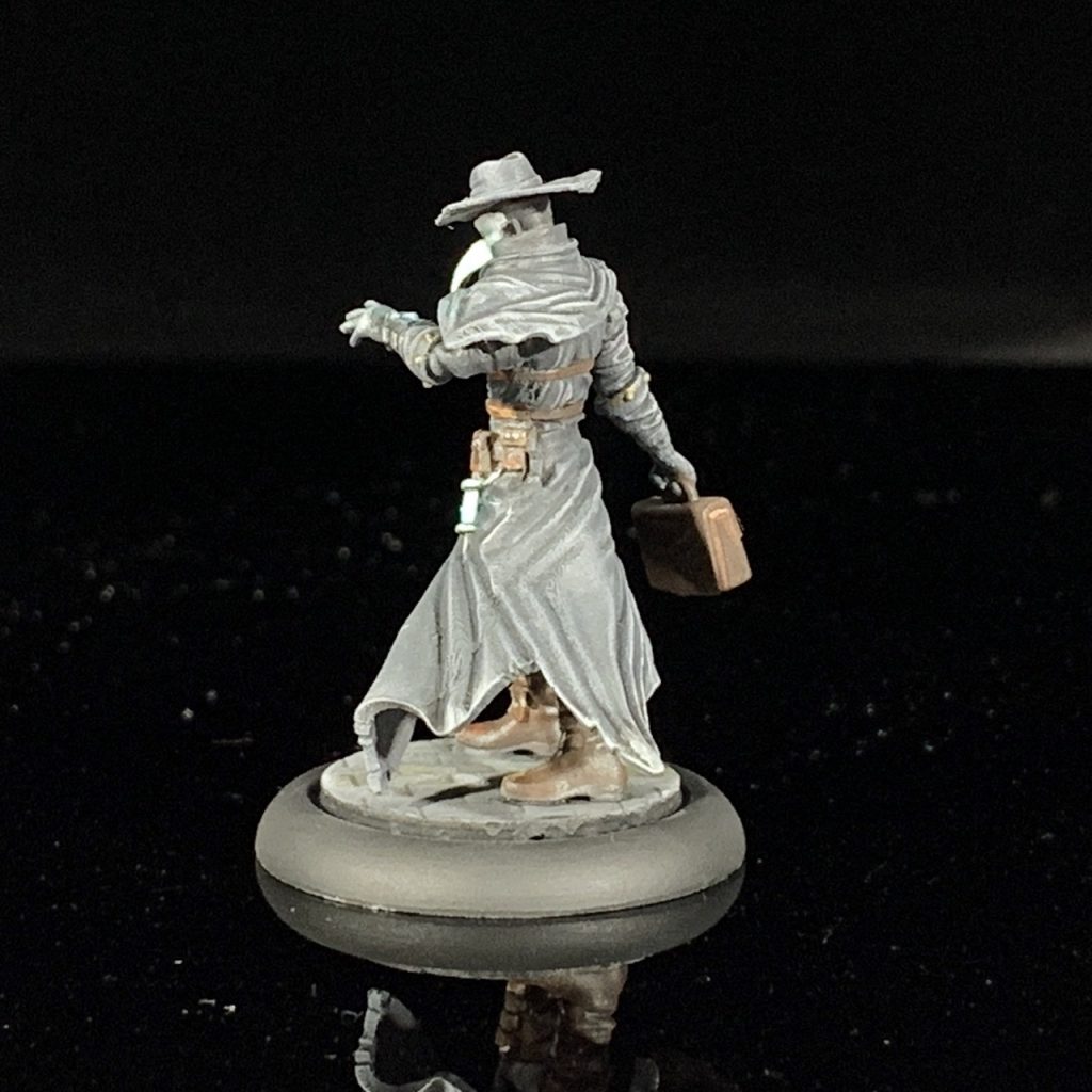 Next up are The Doctor of the Arsenal and The Plague Doctor pretty much clad head-to-toe in leather! The fantastic HTPE: Leather article we published was a major help here, and I focused on just building up small layers. I carried the theme of mahogany leather from the warden on to the doctors, to help give them a slightly coherent theme.