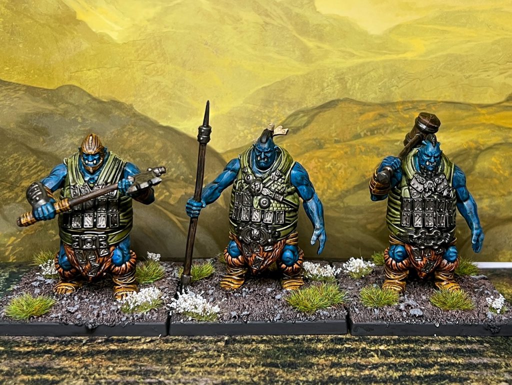 A real mix of minis here from Jotnars to various beasts (with only Fenr so far released) and then Ugr and Trolls. I'll be showing how to paint the traditionally blue fleshed minis here, which will apply for Ugr, Trolls, Fenr, and the Ice Jotnar. You can easily apply this to the Sea Jotnar as well of course!My Mountain Jotnar I painted with the human-scheme above using more Kislev Flesh as highlights since the proportions are much larger and benefits from being highlighted much more.