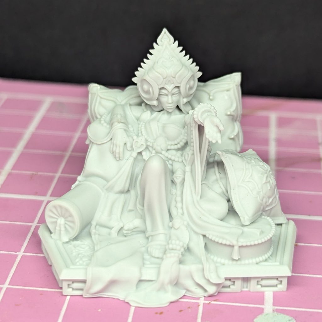 The tassels were basecoated with Mephiston Red, washed Agrax Earthshade, then highlighted with Evil Sunz Scarlet and Wild Rider Red. And with that, the body itself was finished!
