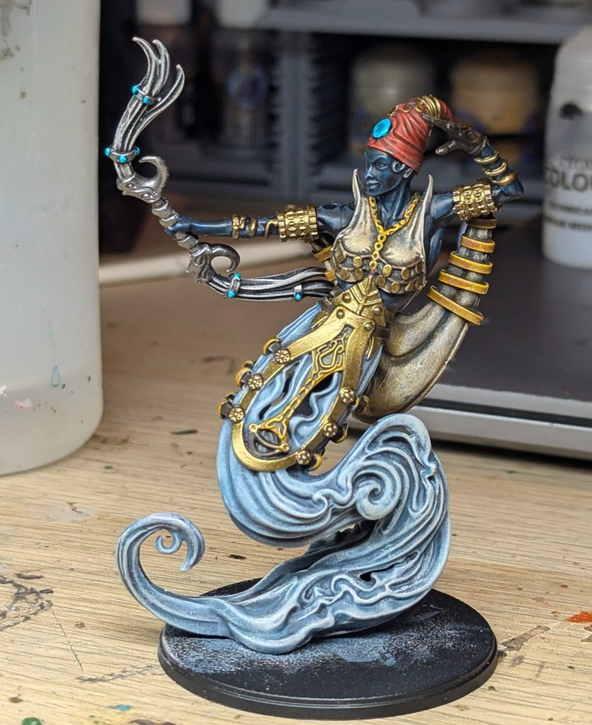 That was pretty much it! The bows on the Windborn got a coat of Seraphim Sepia and a highlight of Wraithbone, and I tidied up any egregious overspill (mostly yellow somehow making its way onto the Djinns' smoke trails).Mysterious "Marine Juice" Magic Wash