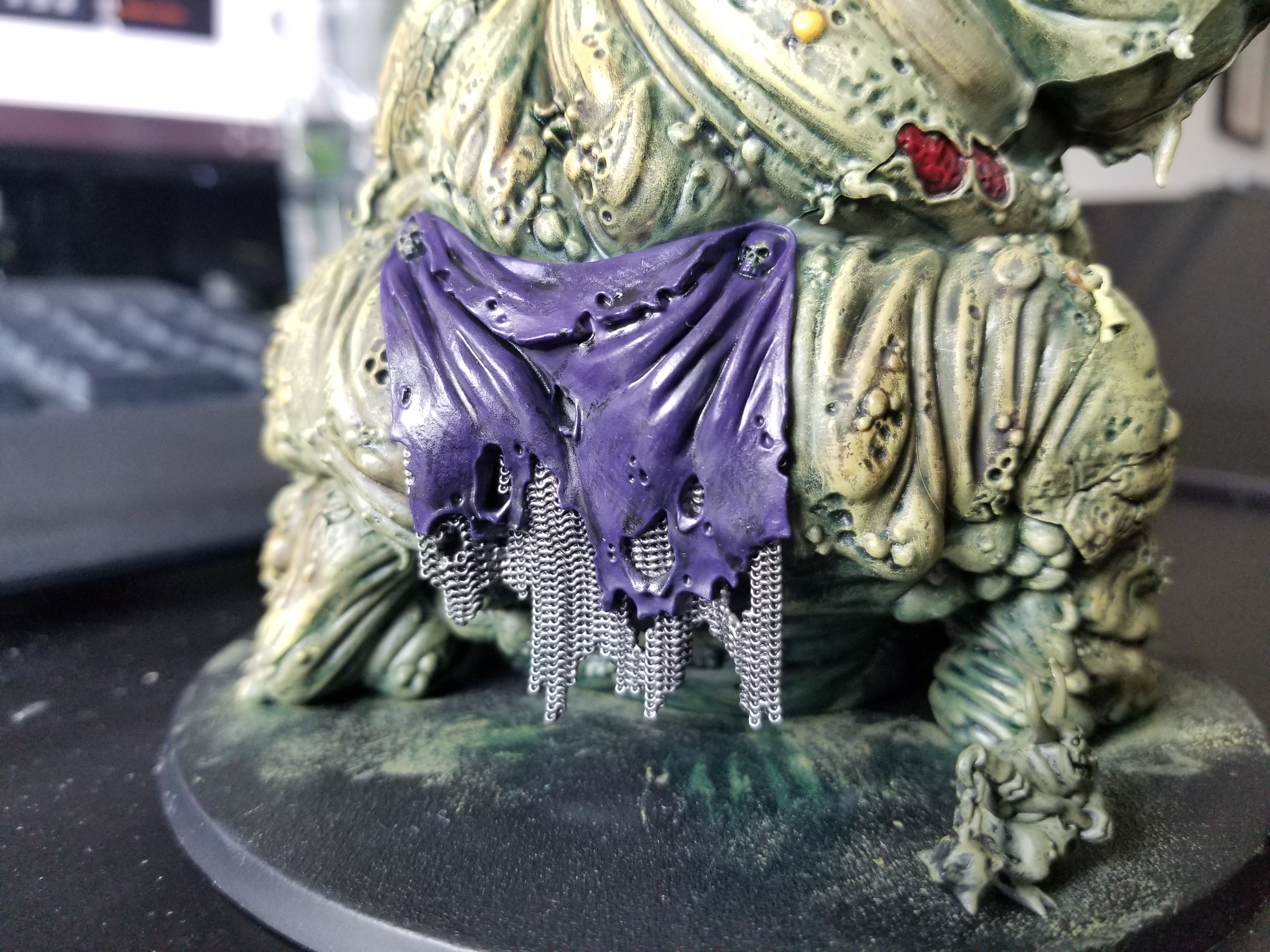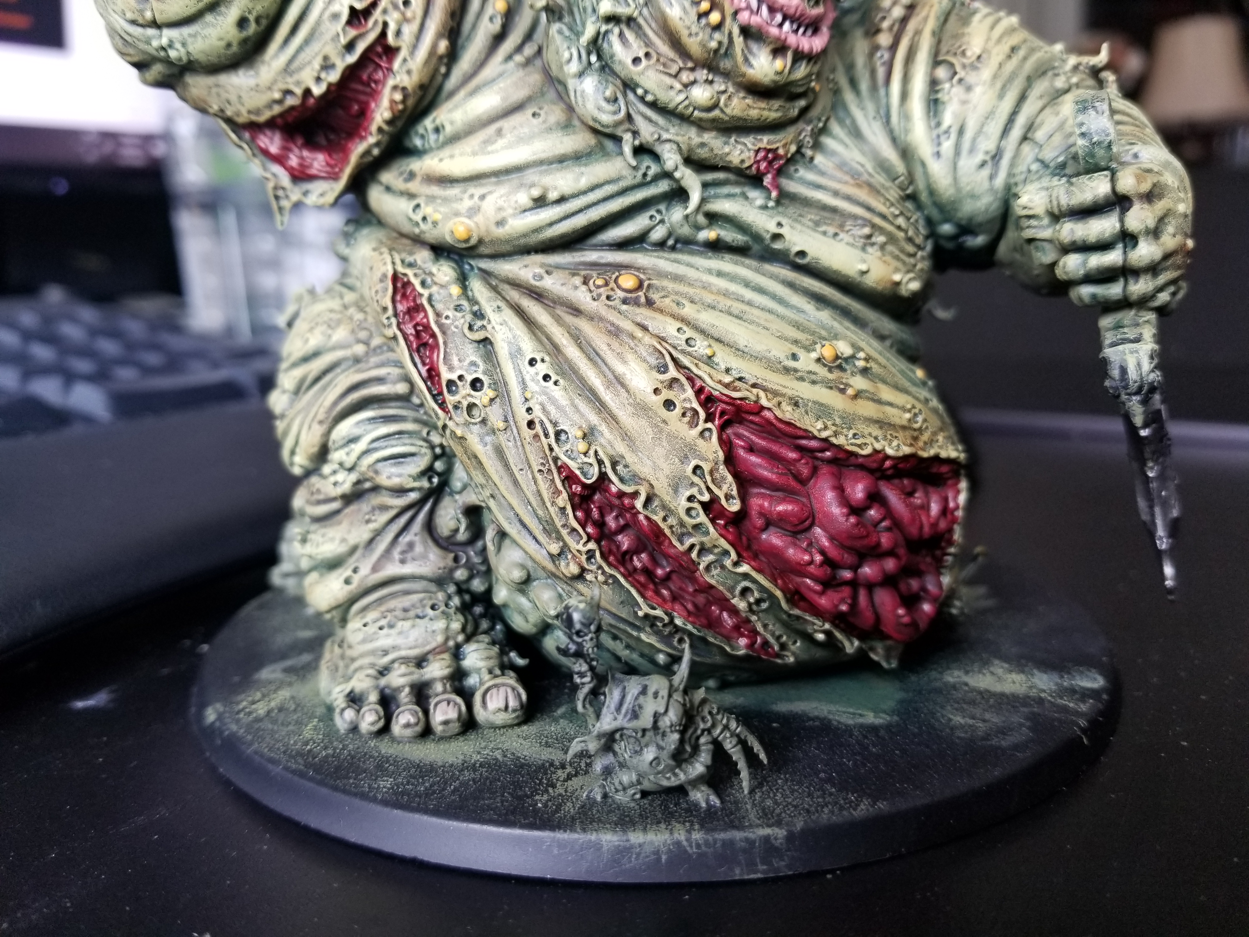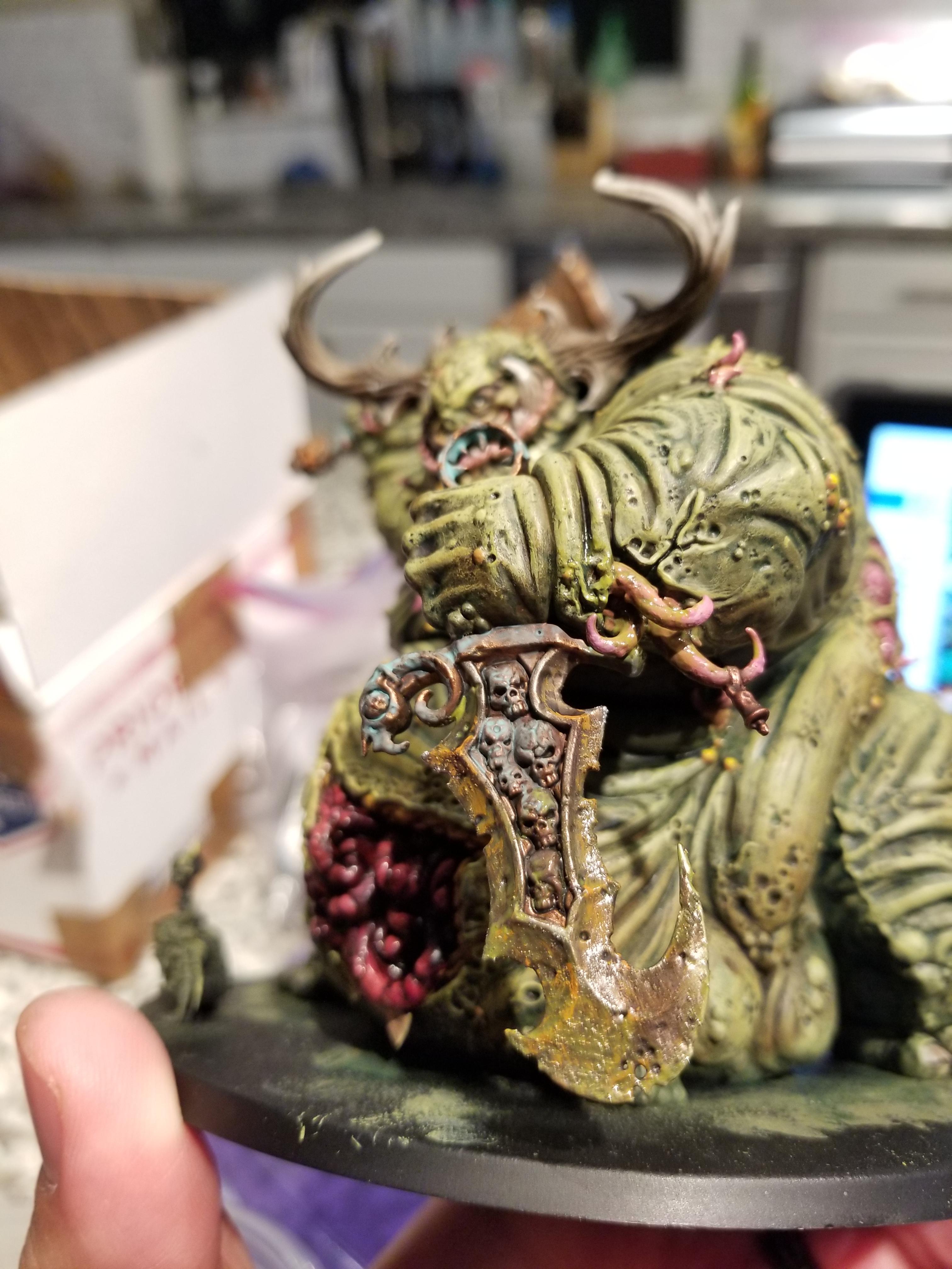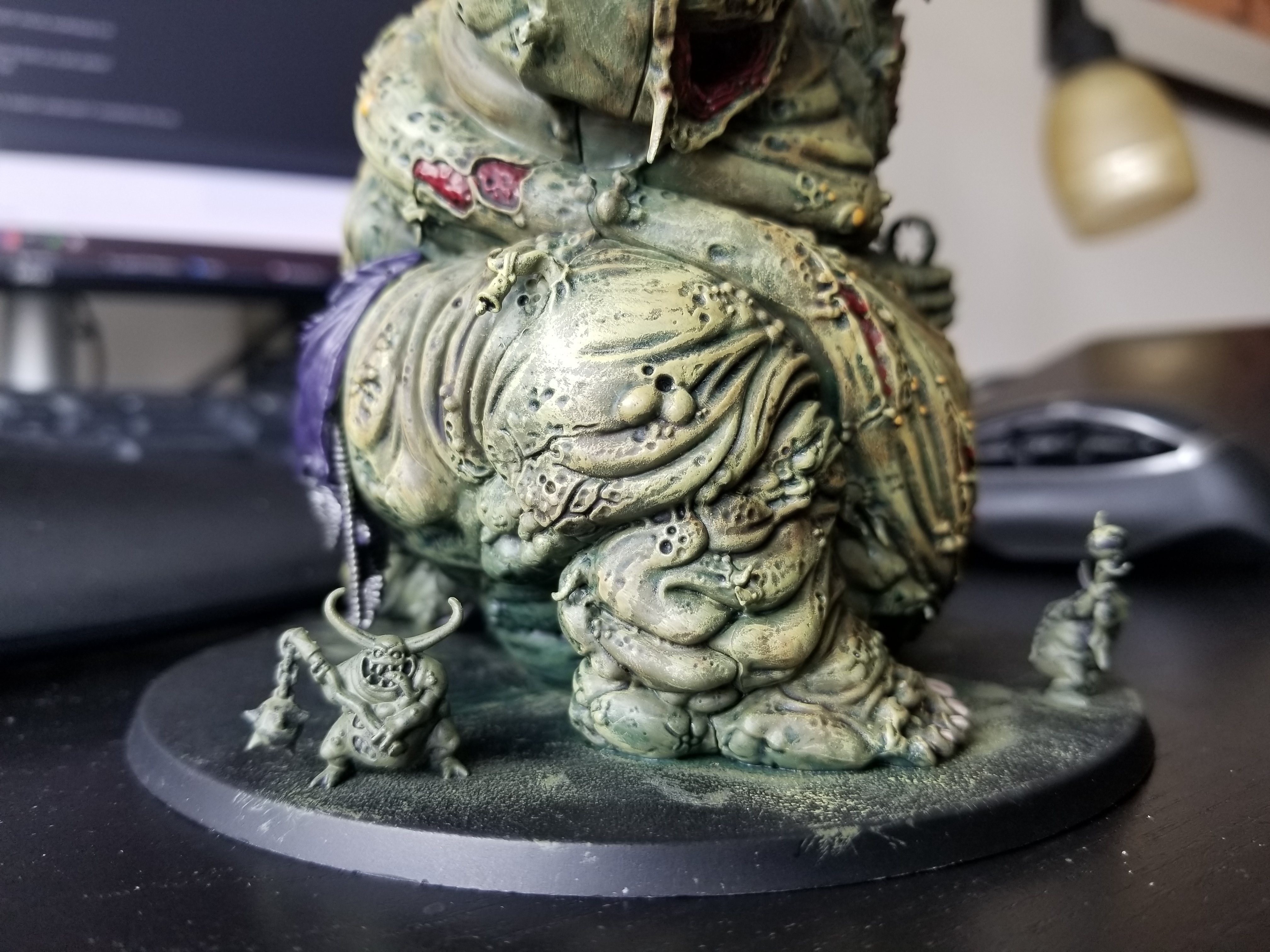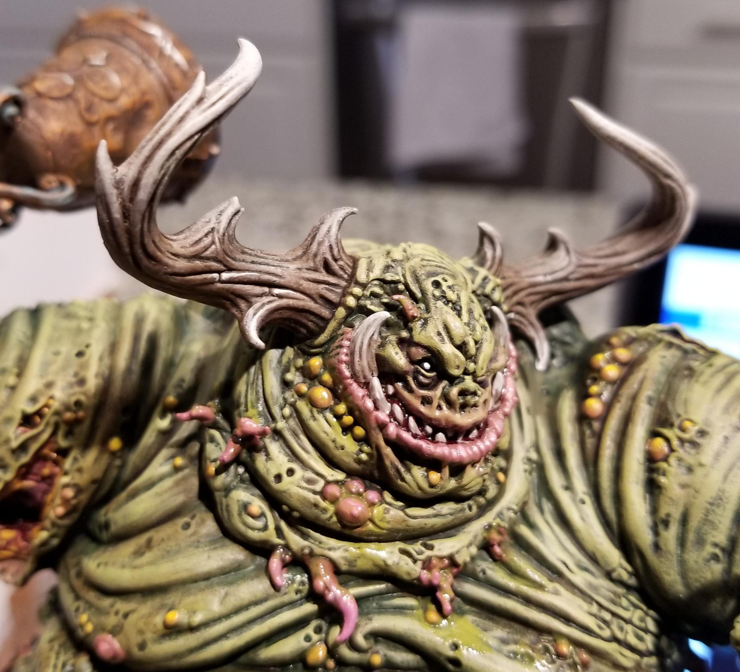 I started painting Nurgle Daemons to accompany my Death Guard. Recently, I've started fleshing them out into their own army and really taking on some of the bigger models they have to offer, which meant painting my Great Unclean One.