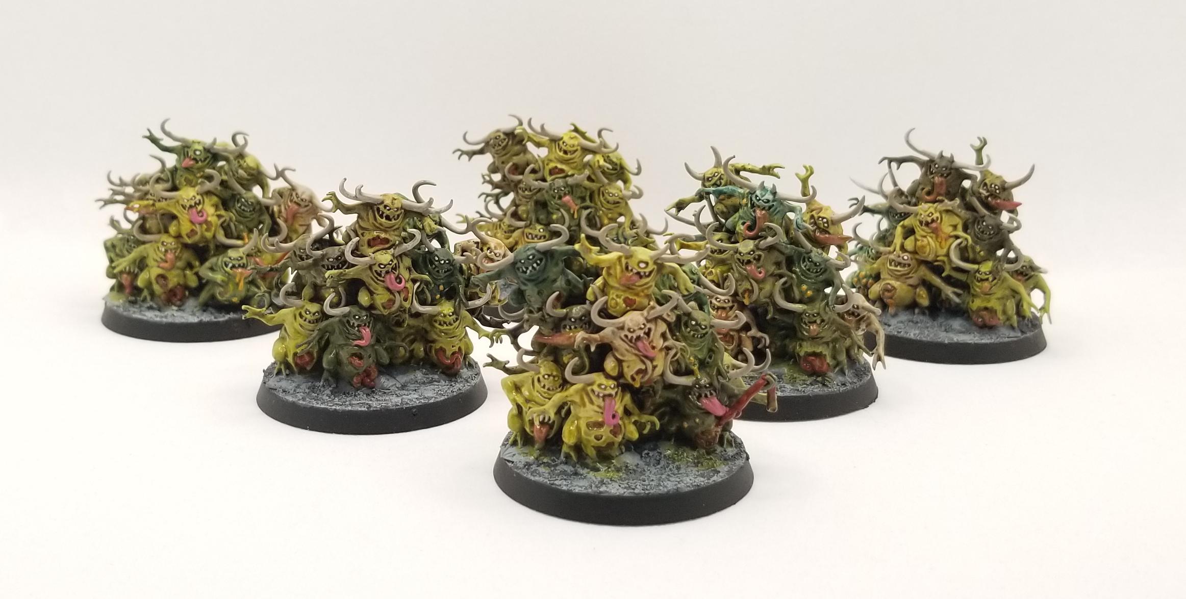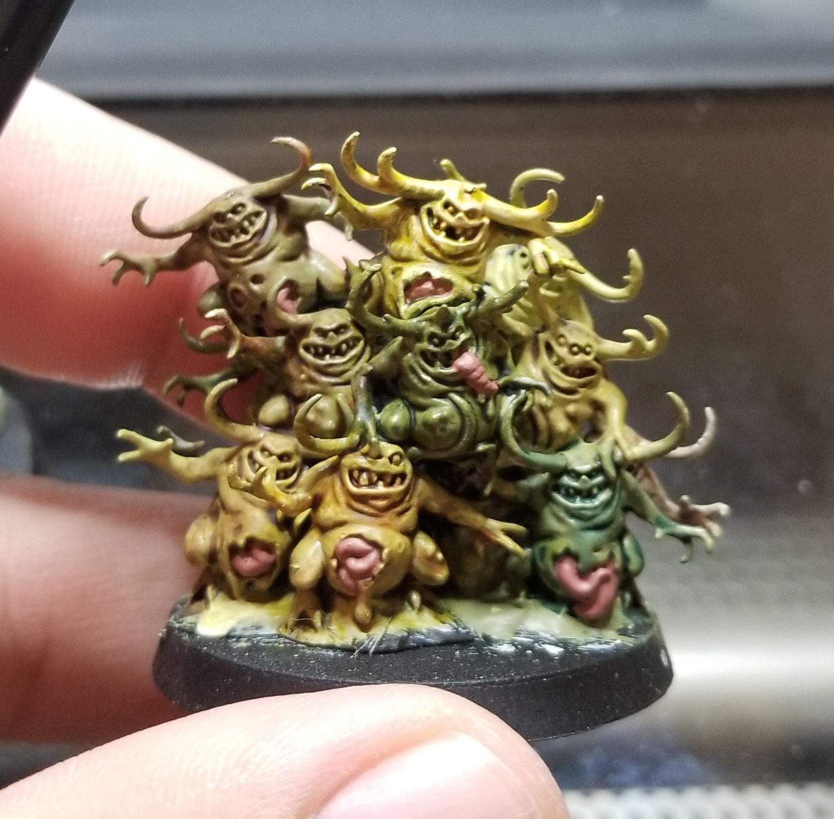 Nurgle daemons are very forgiving and fun to paint. You can incorporate bright and dark colors, nearly on a whim, to experiment and learn. The best part about painting Nurgle daemons is that, even when you mess up, if it looks cool, Papa Nurgle can justify it. Plus you get an excuse to heavily use weathering and other effects! Let's get into it.