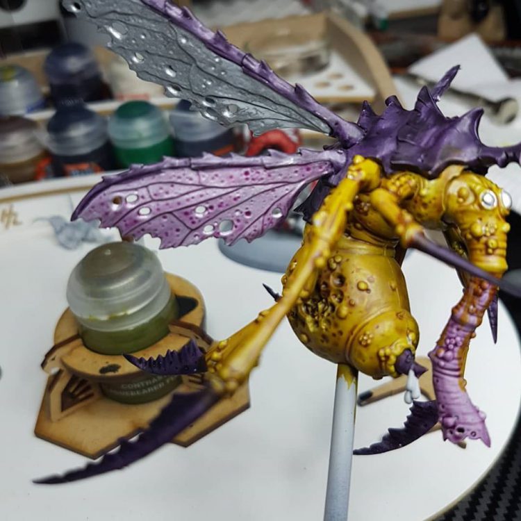 Plague Drone - Credit BeanithThese guys are practically made for Contrast. You can almost smoosh them faster than building them. To make my life easier, I’ve mounted Mr Buzz Buzz on an old paintbrush handle because flightstands are evil flimsy little bastards of a thing sent down to earth just to mess with us. I’ve left those aside for my friend to deal with.