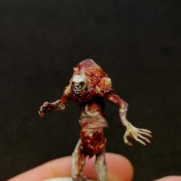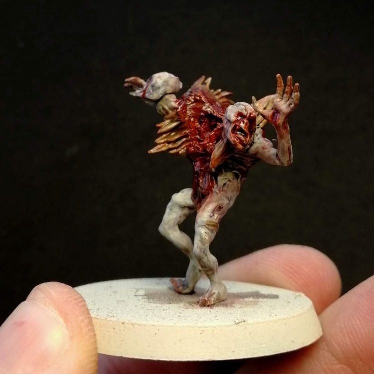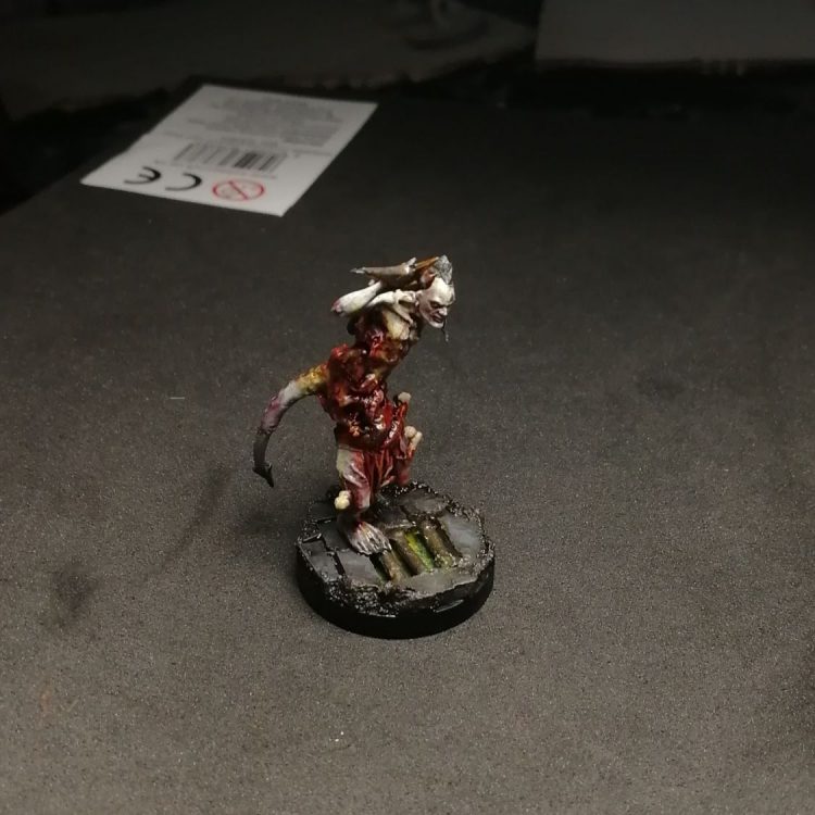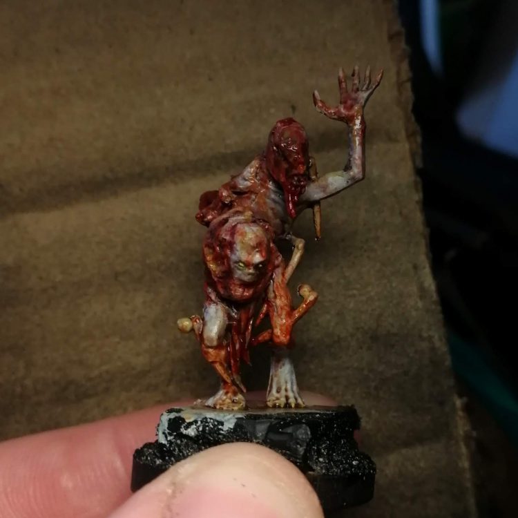 Vestige was another combination of two ghouls. but this time I cut away the belly of the first, and around the right shoulder, then formed a greenstuff belly into which I set a ghoul head. I then used PVA and superglue as before to make it look ragged and like an open wound, and that was pretty much all that was needed.