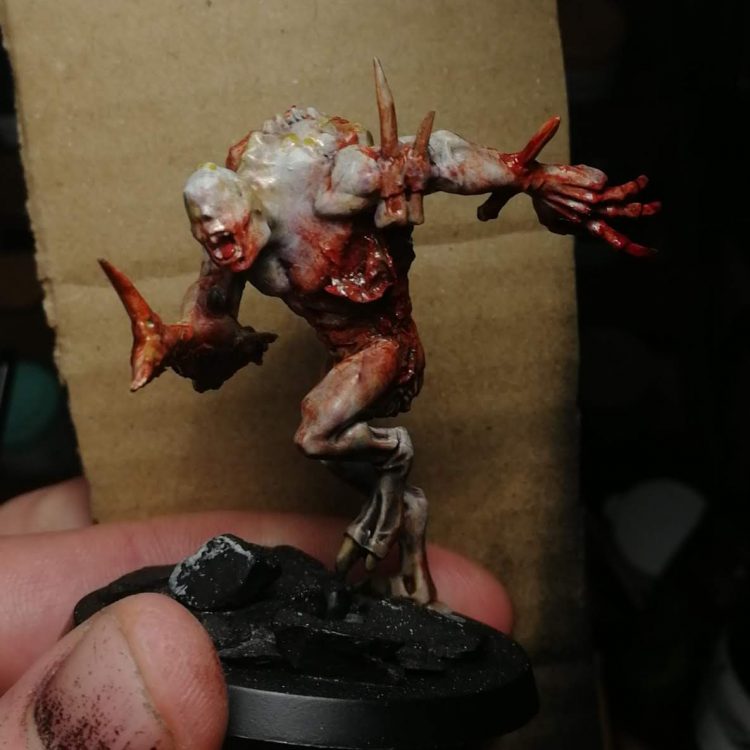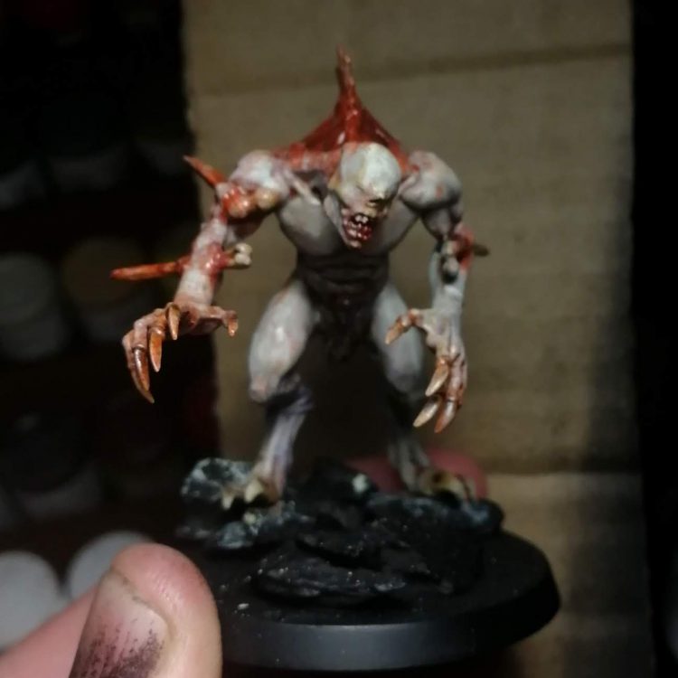 Credit: PierreTheMimeI primed the Cthonian in Wraithbone spray, as the first painting step I took was a quick application of Skeleton Horde contrast. This gives the model a nice earthly undercoat, which I'll then build up with successive layers of pasty flesh.