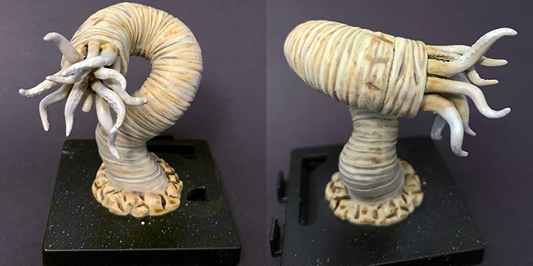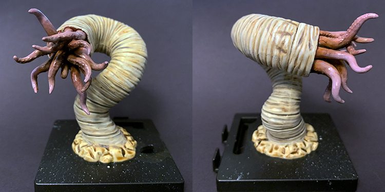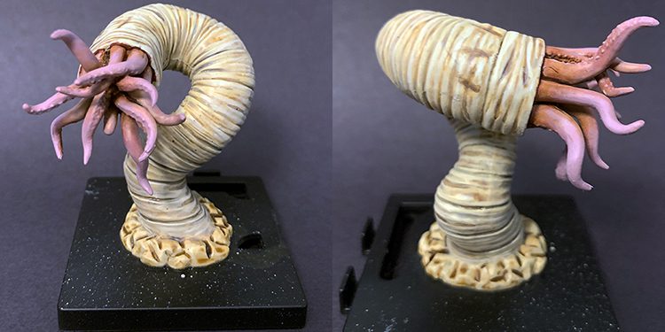 Credit: PierreTheMimeFinally, I went over the model and handpicked some crevices and details to hit with some Agrax Earthshade to deepen some of the folds and marks. Next I applied shading to the pucker-areas of the tentacles and at the mouth where they enter the body. Finally, I applied a gloss (I used Secret Weapon Scenics Realistic Water because I couldn't find my actual gloss) to give that bonus gross factor.