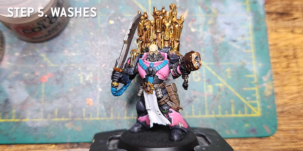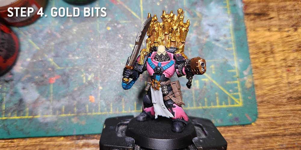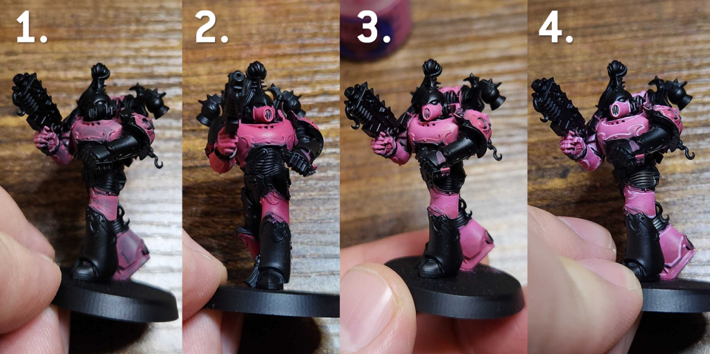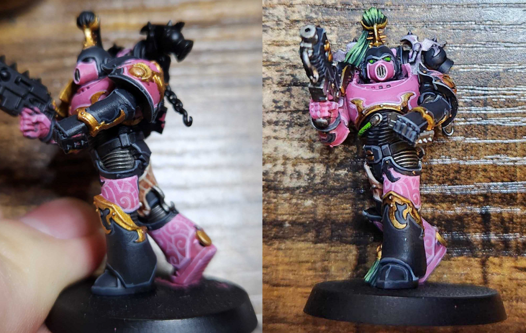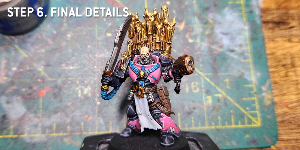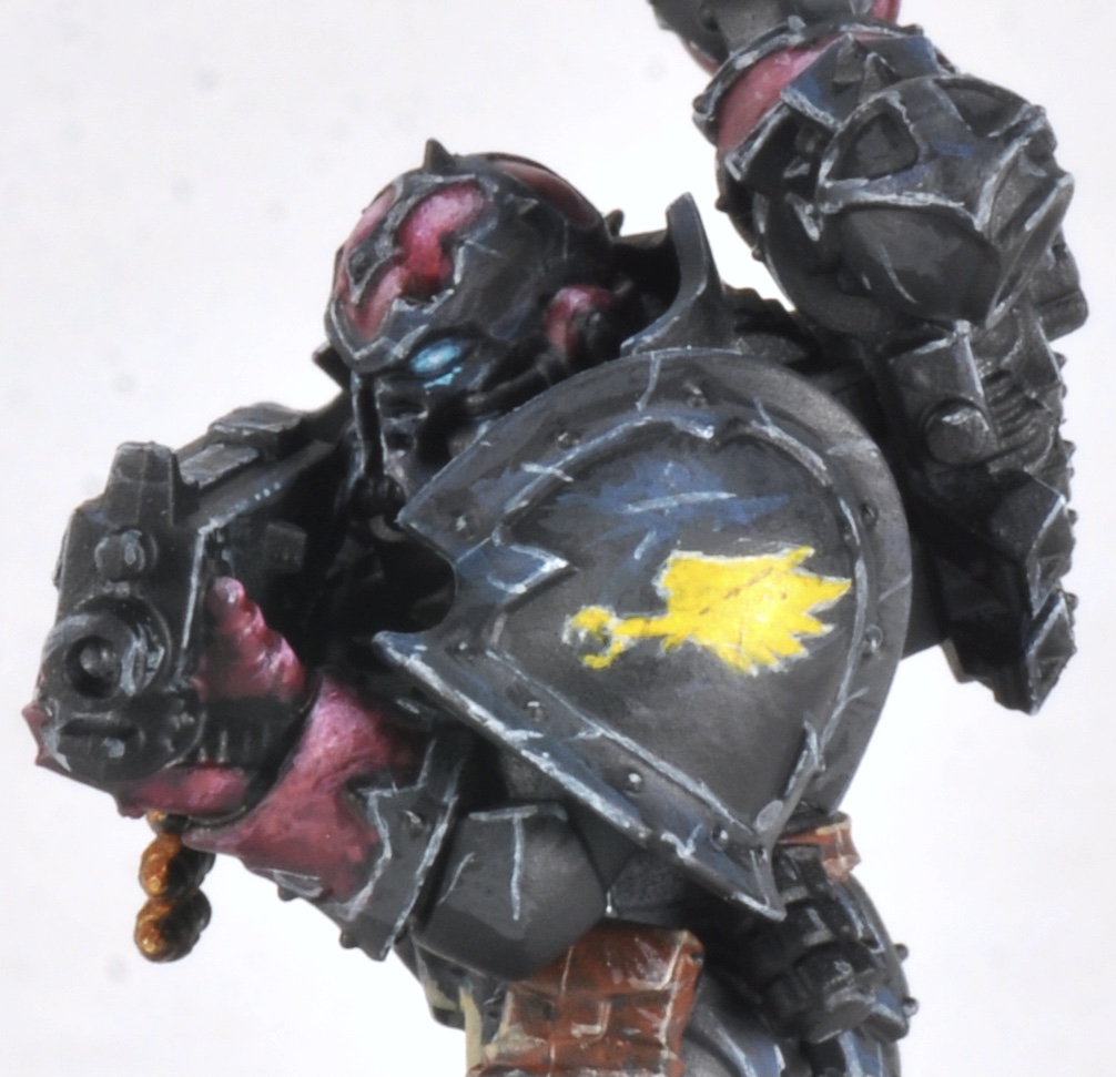 Retributor Armour.And that's pretty much it. I highlight the face skin again, using Flayed One Flesh and some Reaper Polished Bone. It's a relatively simple scheme, but the trick is how you apply it, figuring out when and how to mix up the pink and black.