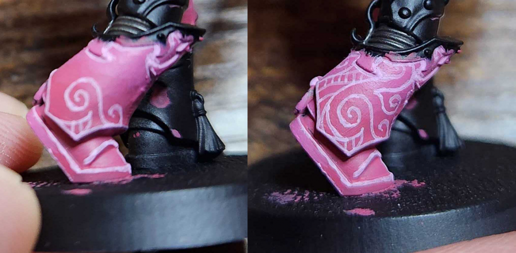 I started by laying down the basecoats for the pink parts of the model. This is