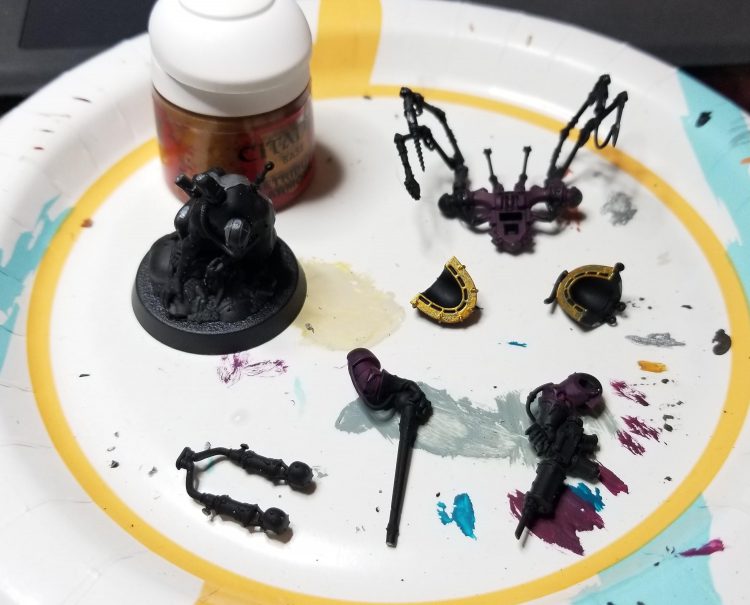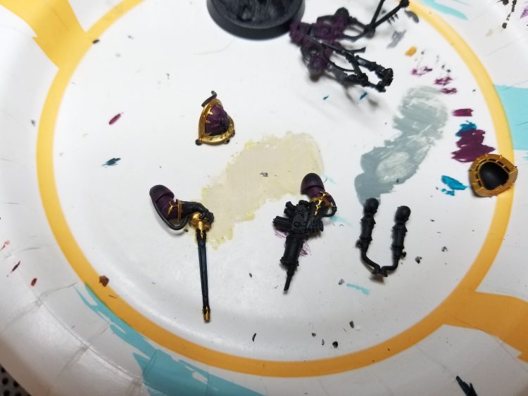 Speaking of sub-assemblies, I'm painting Bile's body separate from his arms, shoulder pads, and backpack. I want to make sure I get all these parts done well and some of them need good 360-degree coverage. Plus I usually paint space marine shoulder pads and backpacks separate when I really want to go all-out on a model.
