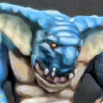 If you’re still learning the ropes of fine detail-painting, or coming from larger scales to 10mm, then what I call the “messy” method is the best way to get started. Cover the eyes with white paint. You can be sloppy here. It may take two coats to get it pearly white. Then place a long, thin, vertical black stripe to mark your pupils. Then clean up the mess around the eye with your black.
