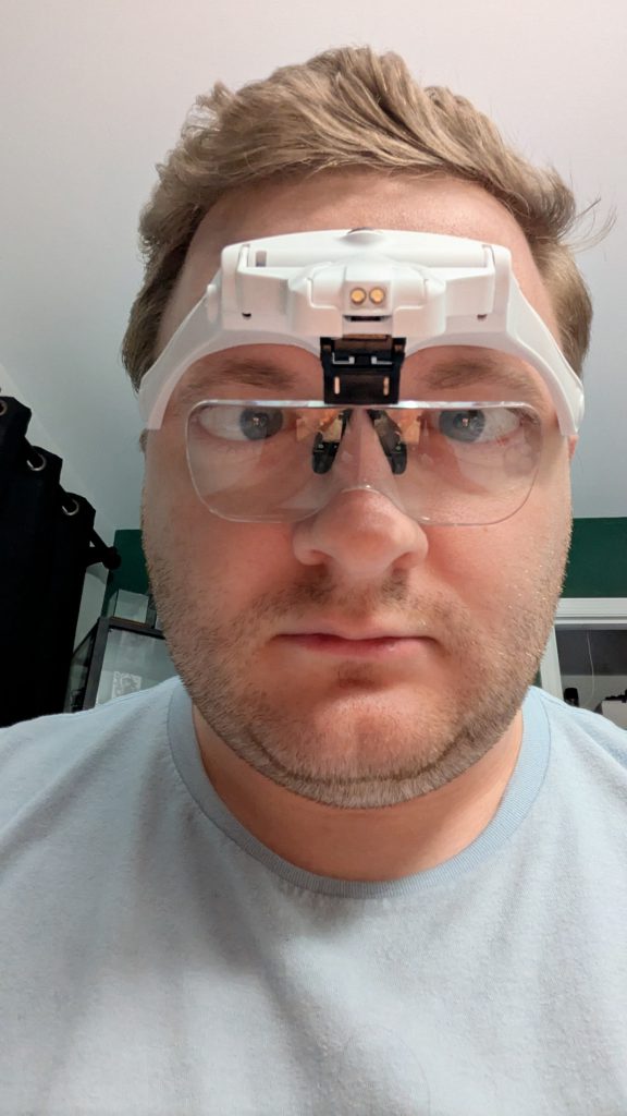 Something like this is sufficient, and I've found they are pretty comfortable to wear for long paint sessions.Speaking of not straining your eyes, you should invest in a cheap pair of magnifying glasses. Yes, I’m talking sexy goggs. They help immensely, especially when you’re trying to paint a face smaller than your pinky thumbnail. I started using them just for small details like faces (seriously, do you know how small some of those Kingdom Death faces are?!), but now I use them almost any time I’m painting anything more than a base coat. As it turns out, you can paint something better if you can see it better; funny how that works, isn’t it?