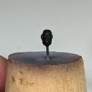 When trying to up your face painting game, you need to decide where the light will be coming from for your figure so that we can paint a believable miniature portrait. With a zenith highlight or pre-shade, this part will be taken care of. But you can also totally do it without one like I did here. With a general gaming figure, this doesn’t really matter, but if you are wanting to push your painting to the next level, it’s good to keep in mind. You want to have an idea of where the main source of light for your figure is coming from and then try to keep that consistent over the entire model. Painting a disembodied head in the dreaded sub-assembly will make this exercise a bit more difficult, but keeping the head off your figure (if you can) does make it easier to physically paint.For this face, I chose a light source coming from camera front and left so that the light will be strongest on the right (camera left) side of his face, pictured below.