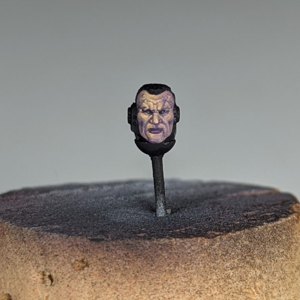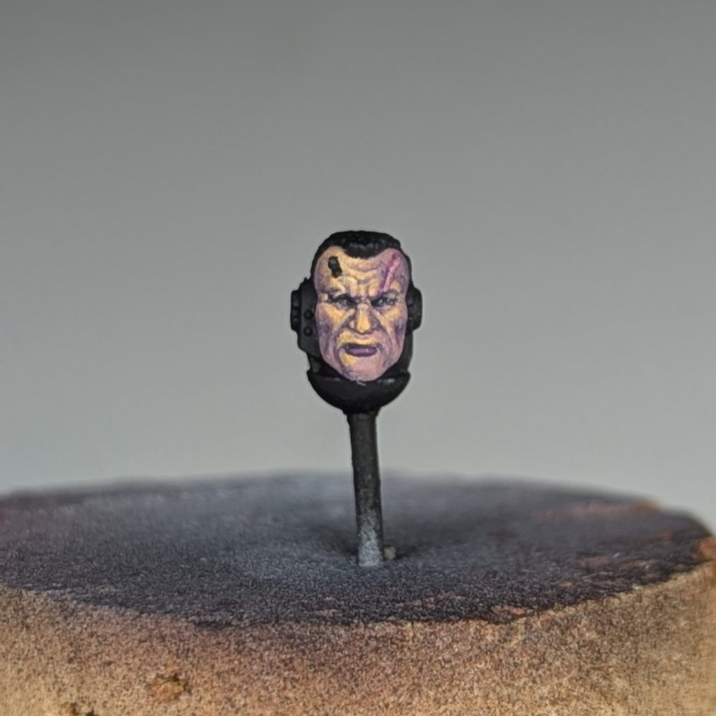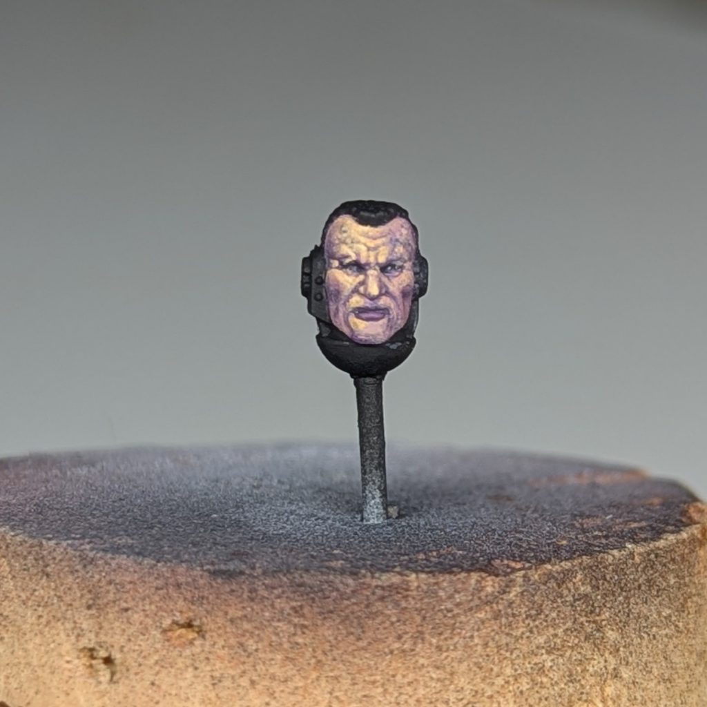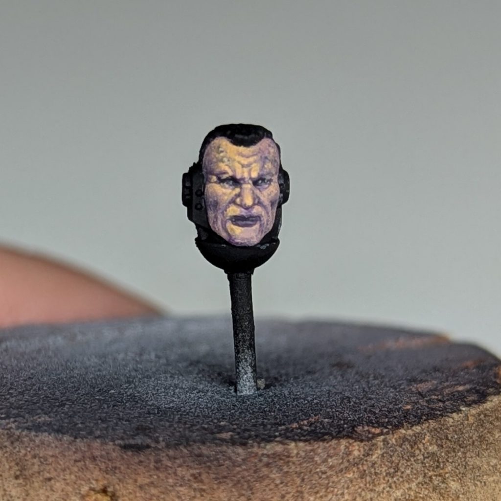 This is definitely not the best face I’ve ever painted; you likely saw some better examples in my last article. But that is exactly the point; not every face can be, or will be, perfect. Hopefully, by giving you all a step by step to try to follow (and fail at; I wouldn’t say I successfully followed my own tutorial here), I may have helped you lose the fear and try to improve your painting of faces. Maybe you even picked up a tip for other aspects of your painting! For example and to give myself some feedback, the paint still feels pretty rough in some places here. The shadows under the cheeks are a bit too deep and make our guy feel sallow and gaunt, which isn't exactly what I was going for (but maybe that's a look that you want!) The shadows in some of the wrinkles are a bit too deep and make him look kind of wrinkly. The lip is a bit too dark.Painting tiny faces is hard, and it takes practice. You may be someone who just wants to make your guardsmen to not look like coke fiends, or you may be someone who wants to push into competition painting. Either way and anywhere along that spectrum, you start from somewhere and to improve you practice practice practice. There is no way for me to teach you the literal technical application of paint onto model; only your own brain can do that to your own hands. Take 5 faces, put them on toothpicks, and go nuts. Each time put the time and effort into trying to do better than the last time, and focus on one or two aspects of the face that I've talked about. For one, focus on the color and creating a pleasing skin tone of whatever shade you want. On the next, focus on a credible light source, etc. Over time, dedicated, purposeful practice will yield results, I promise.