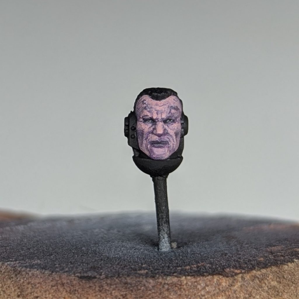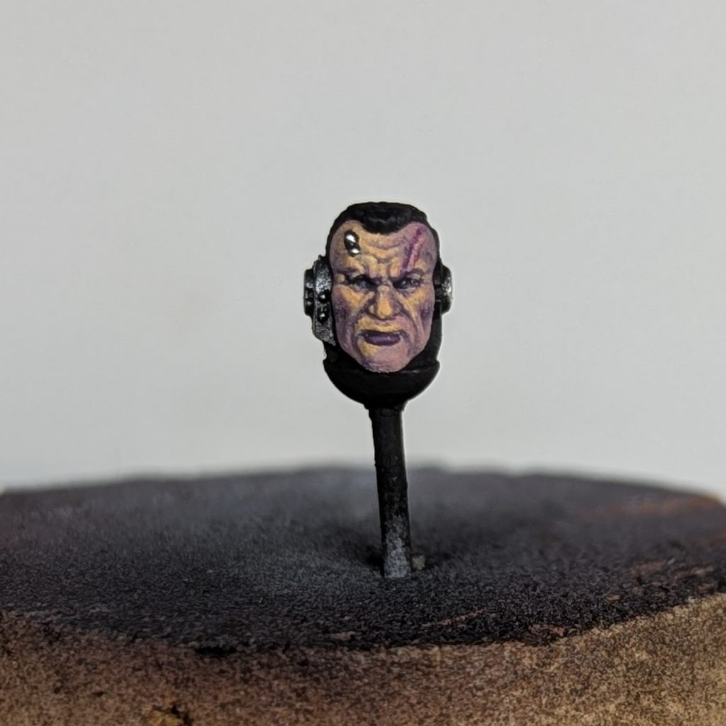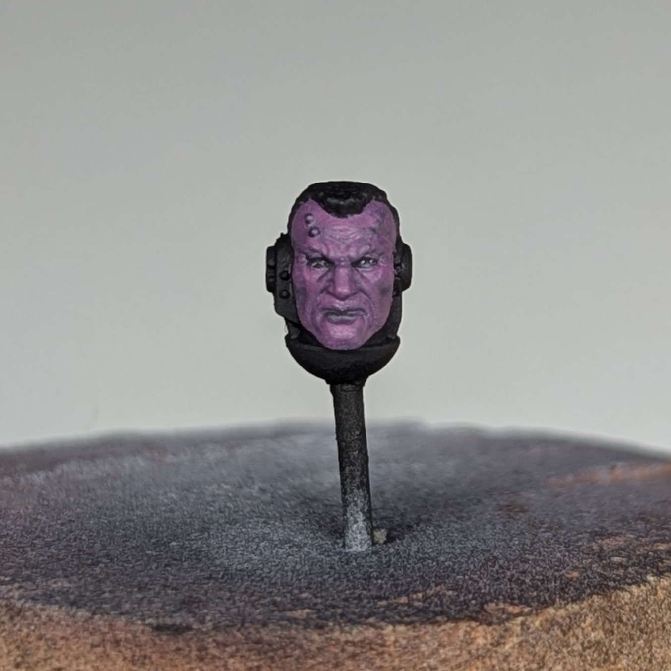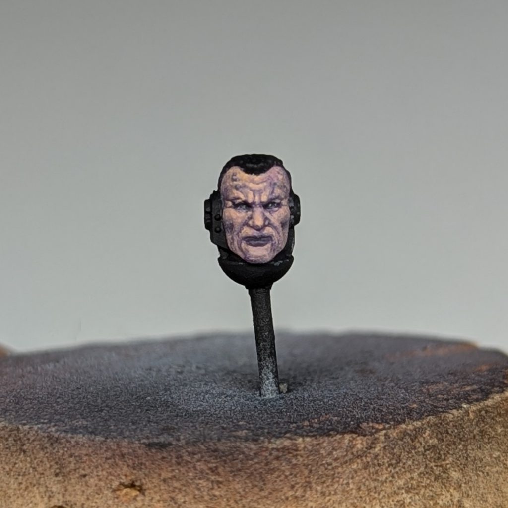 This is definitely not the best face I’ve ever painted; you likely saw some better examples in my last article. But that is exactly the point; not every face can be, or will be, perfect. Hopefully, by giving you all a step by step to try to follow (and fail at; I wouldn’t say I successfully followed my own tutorial here), I may have helped you lose the fear and try to improve your painting of faces. Maybe you even picked up a tip for other aspects of your painting! For example and to give myself some feedback, the paint still feels pretty rough in some places here. The shadows under the cheeks are a bit too deep and make our guy feel sallow and gaunt, which isn't exactly what I was going for (but maybe that's a look that you want!) The shadows in some of the wrinkles are a bit too deep and make him look kind of wrinkly. The lip is a bit too dark.Painting tiny faces is hard, and it takes practice. You may be someone who just wants to make your guardsmen to not look like coke fiends, or you may be someone who wants to push into competition painting. Either way and anywhere along that spectrum, you start from somewhere and to improve you practice practice practice. There is no way for me to teach you the literal technical application of paint onto model; only your own brain can do that to your own hands. Take 5 faces, put them on toothpicks, and go nuts. Each time put the time and effort into trying to do better than the last time, and focus on one or two aspects of the face that I've talked about. For one, focus on the color and creating a pleasing skin tone of whatever shade you want. On the next, focus on a credible light source, etc. Over time, dedicated, purposeful practice will yield results, I promise.