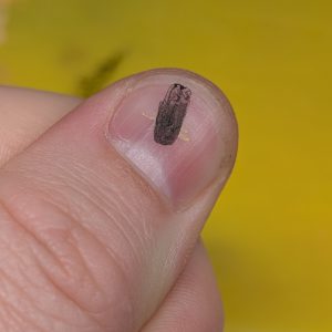 Third is a glaze. A glaze is thinned even more than a layer and is used more for filtering, blending, and smoothing. You are not looking for a solid, opaque layer; glazing is a precision tool. An important note on glazes is when you get it to the consistency you want it (again, testing on your thumbnail), you want to wick the excess off your brush onto a paper towel. You want thin paint, and not a lot of it. If you leave all the moisture in your brush, that is more like a wash that will flood into the recesses of your model, and that’s not what we want here. Aim for your brush to look like mine; the bristles should still come to a point, not be all splayed and swollen with moisture.