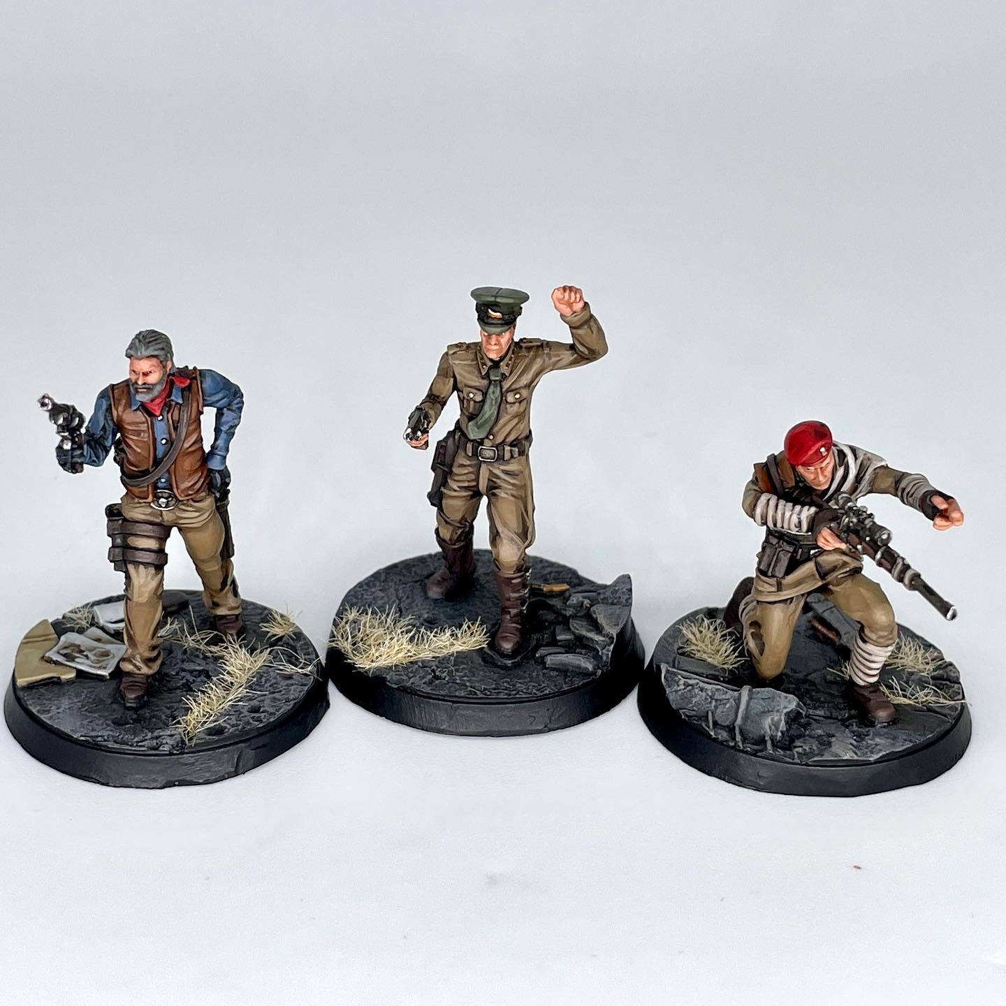 There's a few bandanas and berets across the range, appearing on models like Gorobets and Hanlon in the Top Brass set. For the bandanas you can probably skip the color mixing step, as they're pretty small.- Layer Mephiston Red.