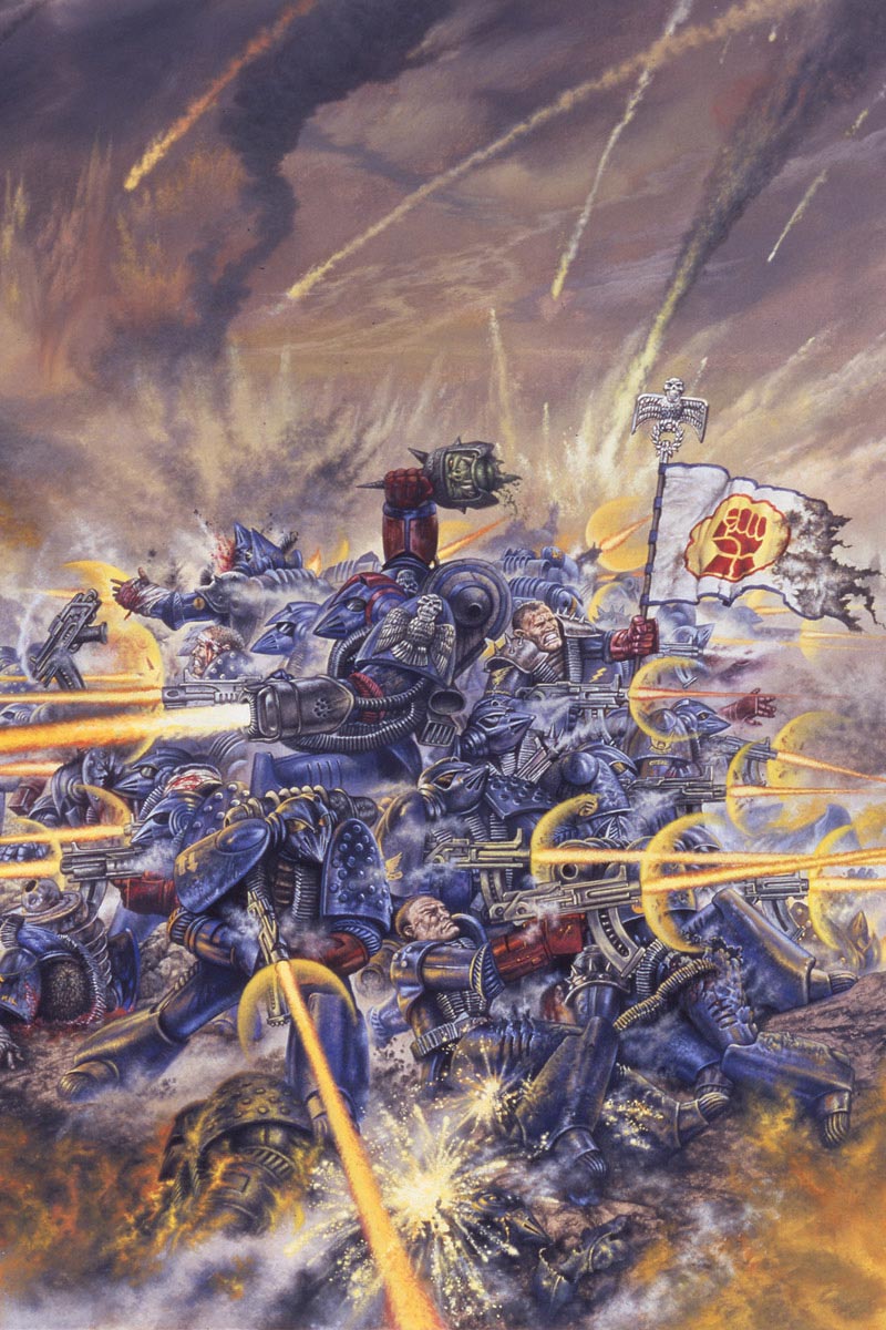 All right, let's get this out of the way: the Crimson Fists get owned a lot. Whether it's the classic Last Stand by David Gallagher, the updated Primaris Version, or even the original cover of Rogue Trader, the Crimson Fists are prone to finding themselves in a desperate struggle for survival. What makes them great is that in the face of the most desperate odds, they never lay down and die. They fight to the end and they prevail. Crimson Fists represent the epitome of tenacity in Space Marines, and in an uncaring universe that will someday destroy you, there's something undeniably noble about the Crimson Fists' spirit. They're the Chumbawamba of the 40K universe.