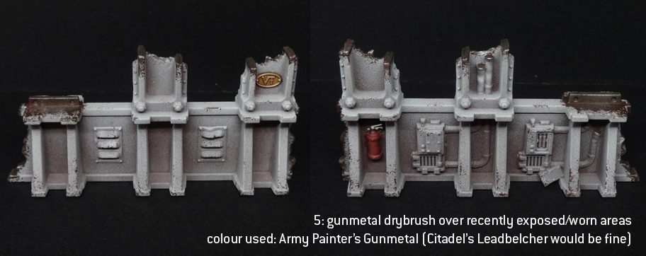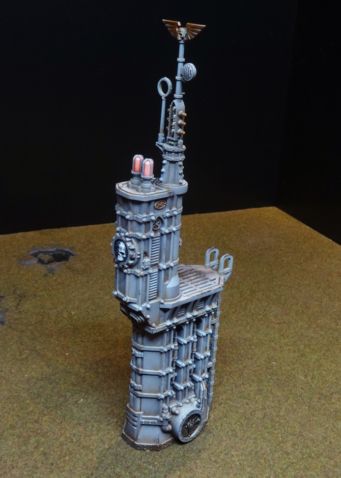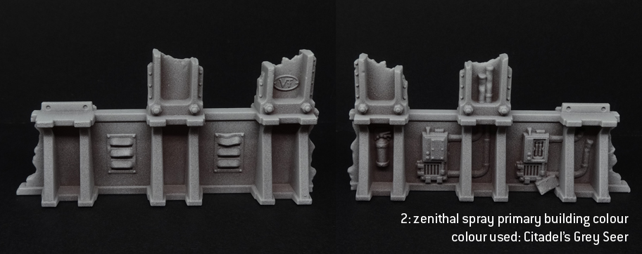 A few details, like extractor fans, were done in bare metal. A basecoat of a darkish silver like Citadel Leadbelcher or Army Painter Gunmetal will do fine here, followed by a wash of Agrax Earthshade, then a final wash of Nuln Oil. That should give it an oily feel without going for hardcore rust. These things are intact, functional buildings - at least, that's how I've painted them.Final notes on the zenithal prime