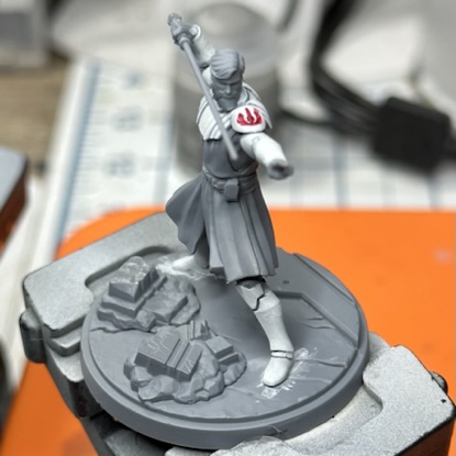 Step one, unpictured, was to prime Obi-Wan in grey. I'm not normally a fan of grey primer and almost always prime in black. I went with it for this model because I wanted brighter colors than I normally pull over black primer, but didn't want to use straight white primer because I'm currently having a good run of mental health and didn't want to hate myself.