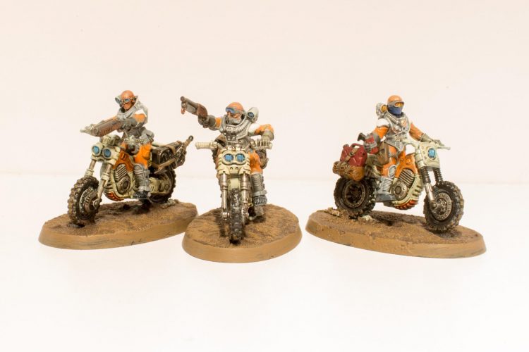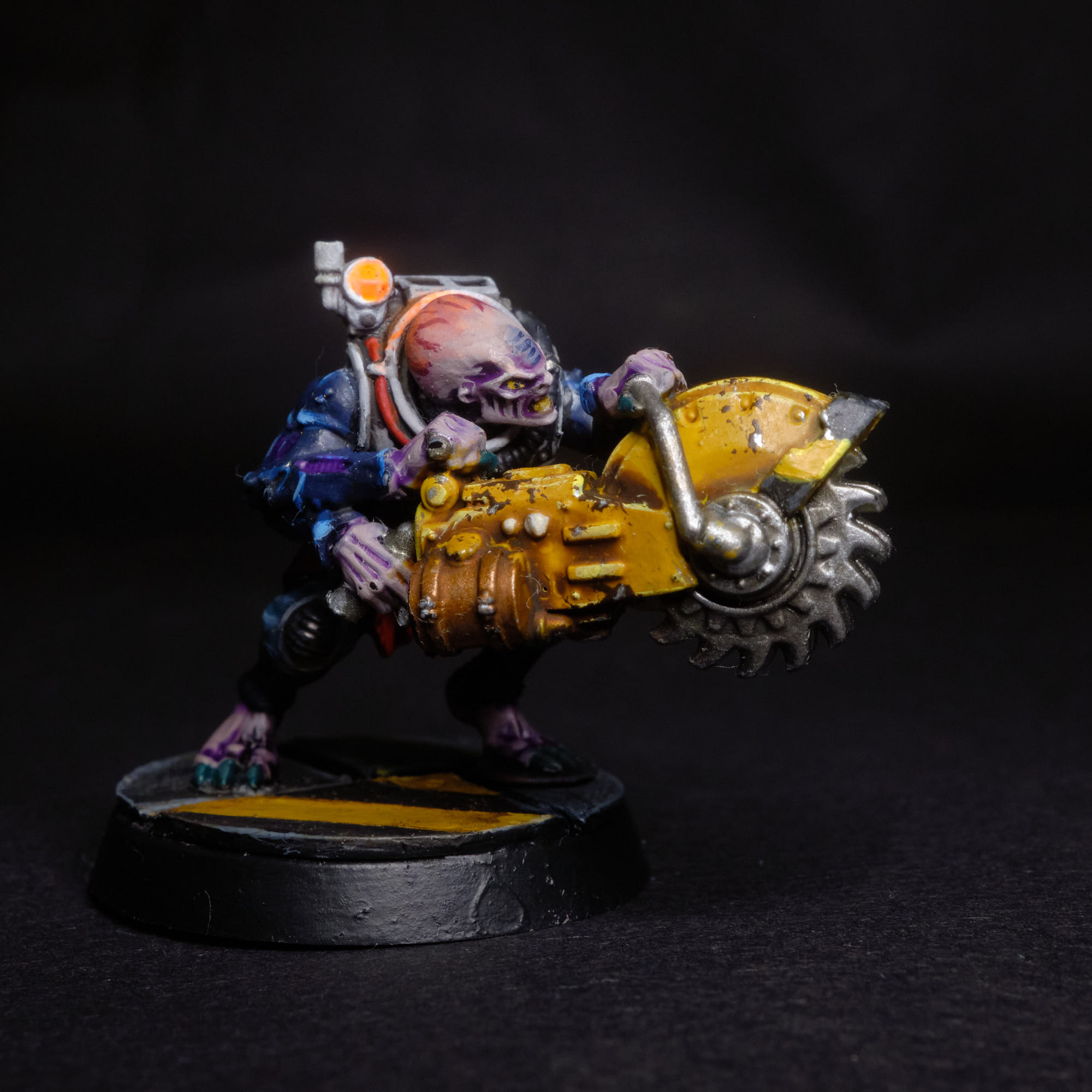 I started my GSC army at the beginning of 2019 with the advent of their Codex. At the same time I made the commitment to attend the NoVA Open, where I was aiming to get 3000 points of cult painted up in 6 months so I could take part in my first Apocalypse game. I managed to get them done in time by horrendous amounts of batch painting. The main approach I took was from this ">video, which I found had the quickest approach to producing reasonable cultists at speed. I ended up taking this approach to all aspects of the army from line troops and characters through to my bike squads.