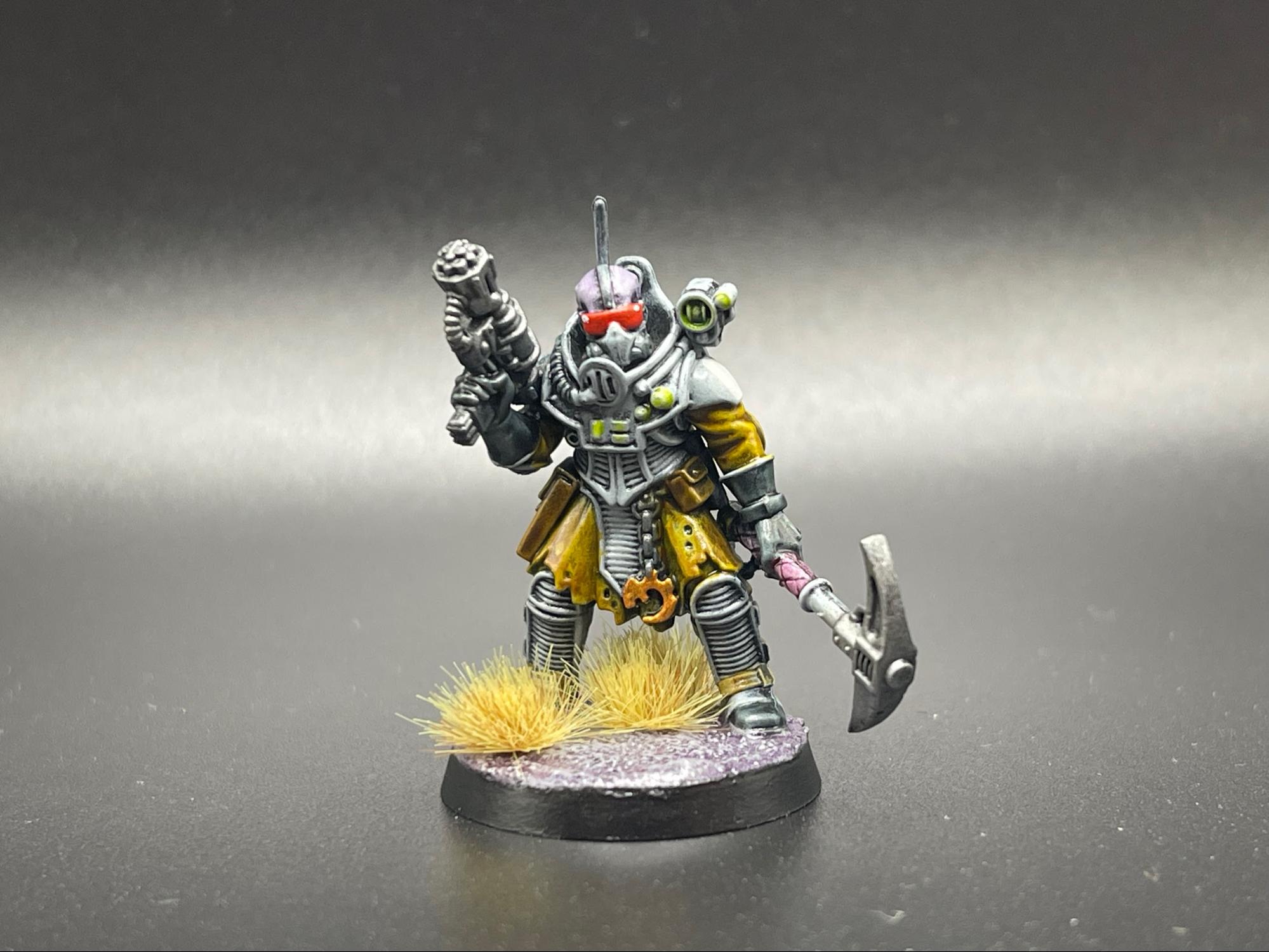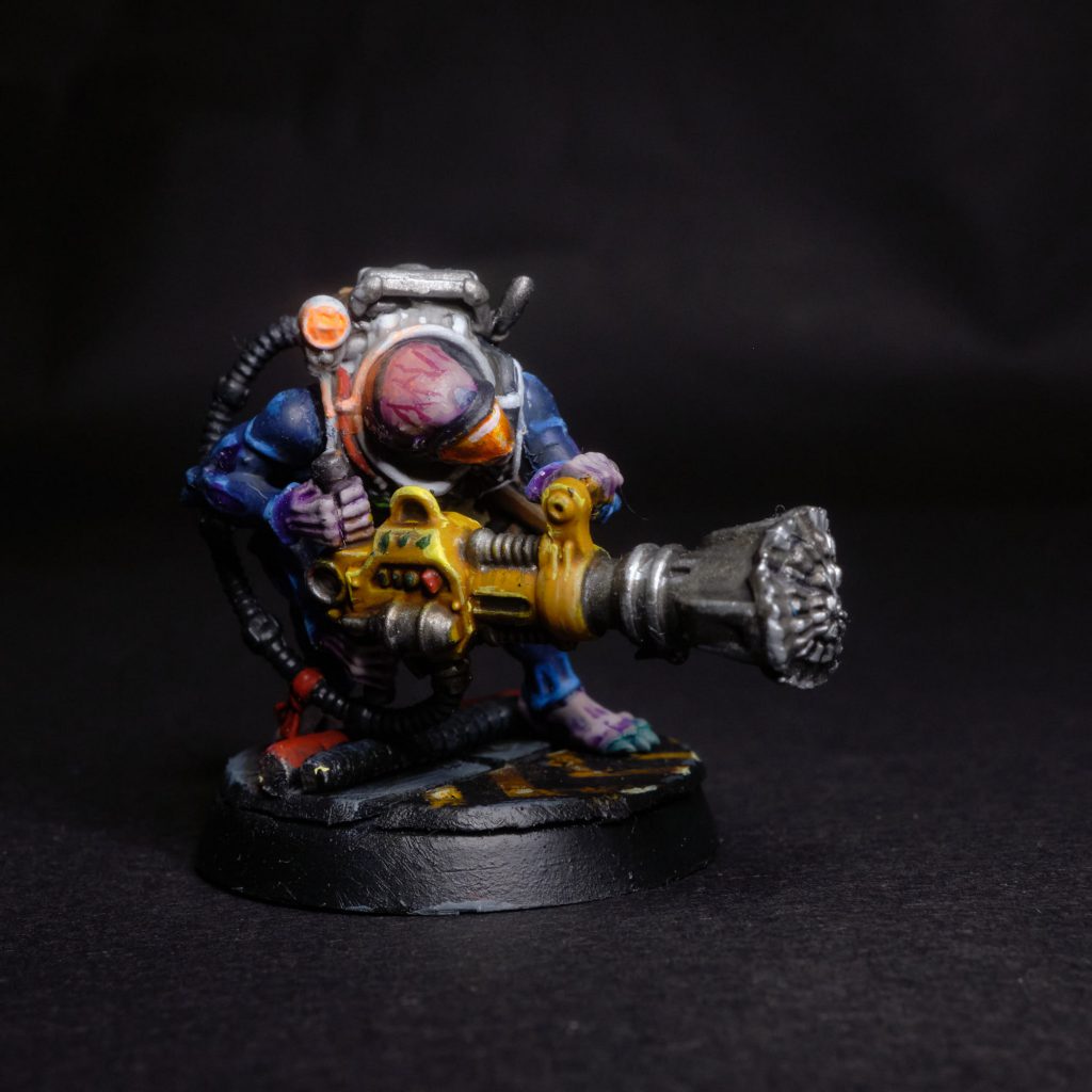 The burnt flesh doesn’t really look like it in hindsight but looks allright in person, it was simply Genestealer Purple with Emperor’s Children Highlights, later washed down with Druuchi Violet.