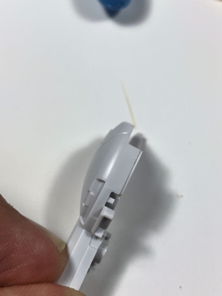 All that's left now is cleaning up. The goal here is to remove very small amounts with each pass, using either your scalpel or sanding file. When using a scalpel, alternating your cuts from each side helps to reduce the chance of tearing the plastic, as does only shaving off a small amount with each pass.