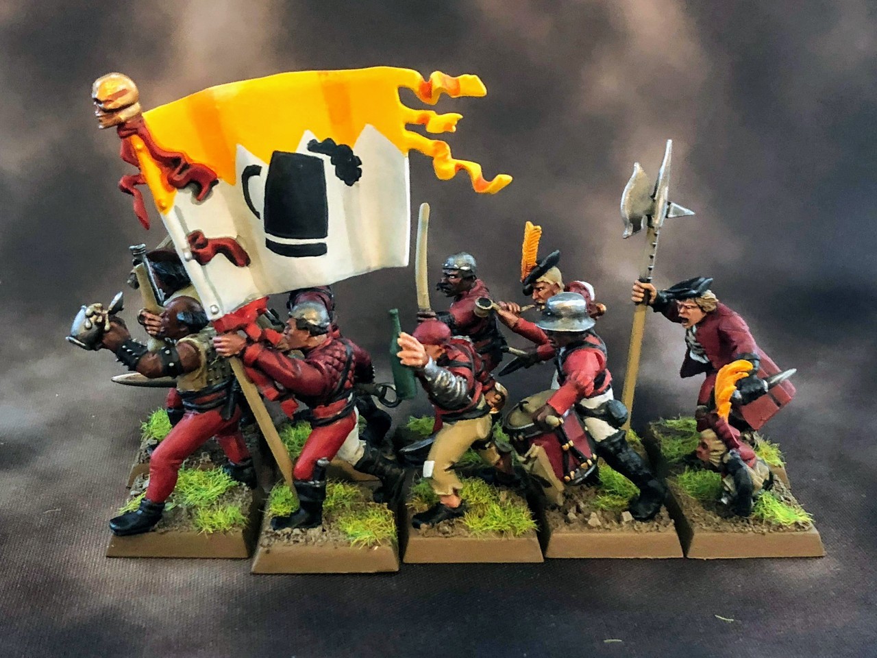 This unit of Free Company Militia is the Talabheim Tappers, a band of mercenaries on an endless bar crawl through the Old World.
