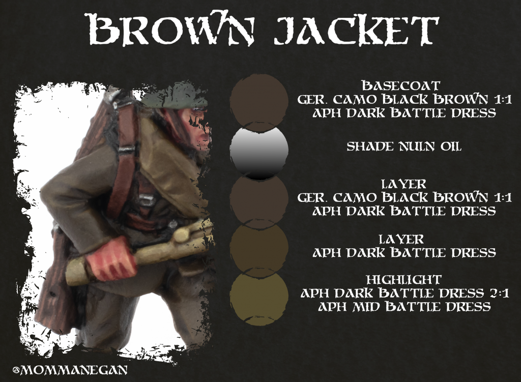 Credit: MommaNeganYou can sometimes see Romanian uniforms in a very deep shade of Khaki Brown, usually those have very little contrast, which can be rather tricky to translate onto a miniature. This should nonetheless make for a decent colour on your uniforms; it also works perfectly fine as the colour for your pants, either to compliment the Khaki uniform or create a cohesive look with a dark brown jacket.