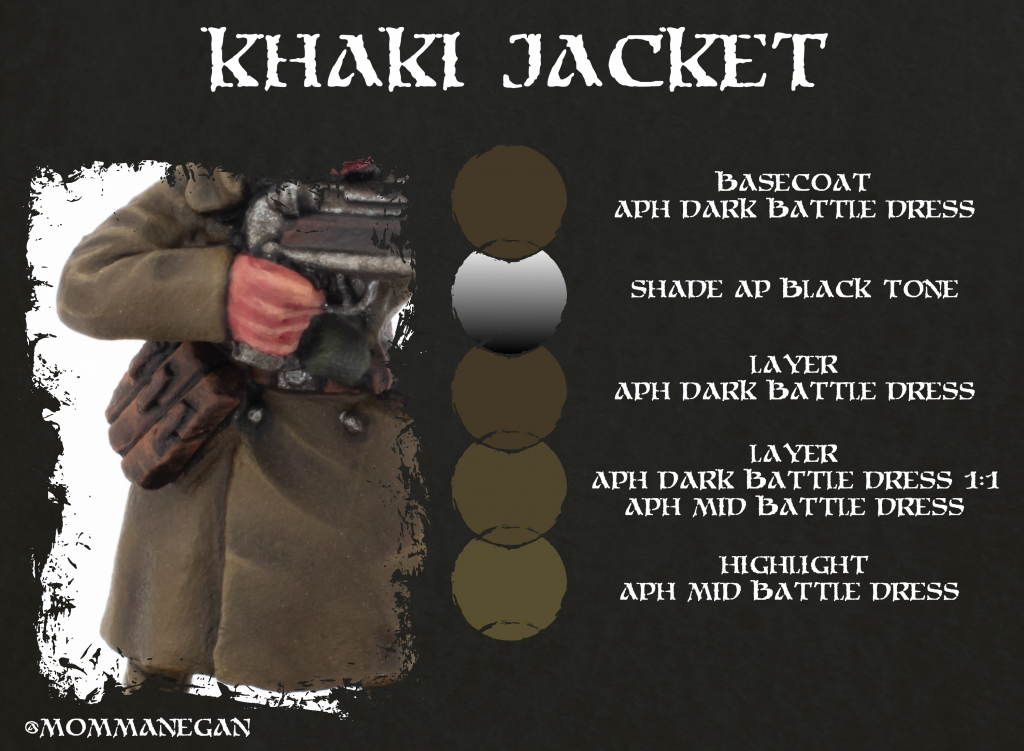 Credit: MommaNeganThe Romanian uniform came in many shades of Khaki, but overall it was relatively close to the khaki brown used for British uniforms. This recipe is a lighter variant of that which can be used for jackets, pants, winter coats and even caps and headwear made from cloth (the Mountain Corps' berets). The basecoat for this recipe is Army Painter Historical's Dark Battle Dress which comes out much lighter than you would expect and feels more like a mid-tone than a shadow tone.