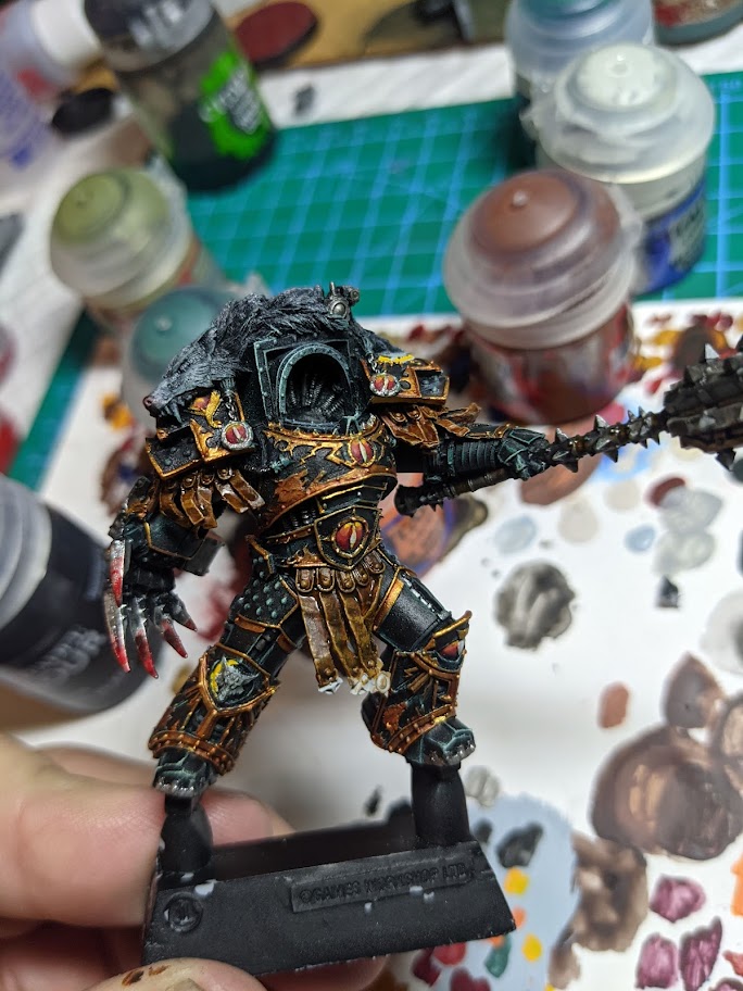 For me, at least, painting Horus' armor was similar to if I painted 40K Guilliman's power armor in Abaddon's colors. There is a lot of subtle sculpted detail on the armor. To that end, drybrushing was a very good friend to help me make sure the armor detail became visible.