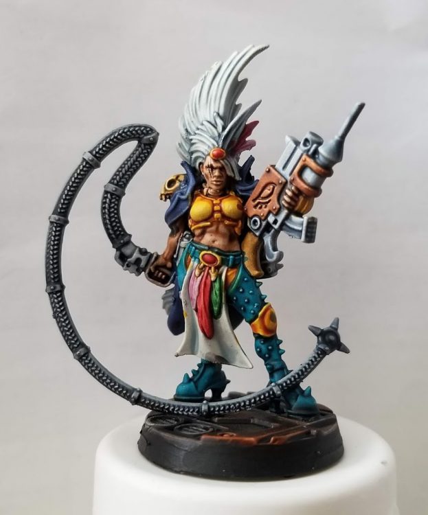 My selection of paint scheme was entirely based on what colours I hadn’t painted recently. I was sick of painting the red, orange and purple of Blood Ravens, Genestealer Cult and Xestobiax Titans respectively. I browsed through Instagram looking for inspiration and eventually settled on a Turquoise and Yellow scheme, largely inspired by Crab Stuffed Mushrooms leader.