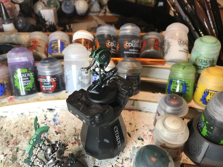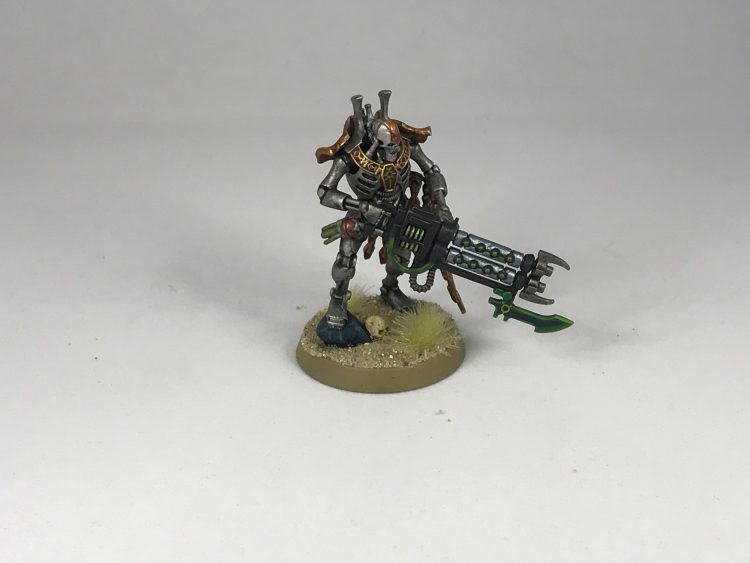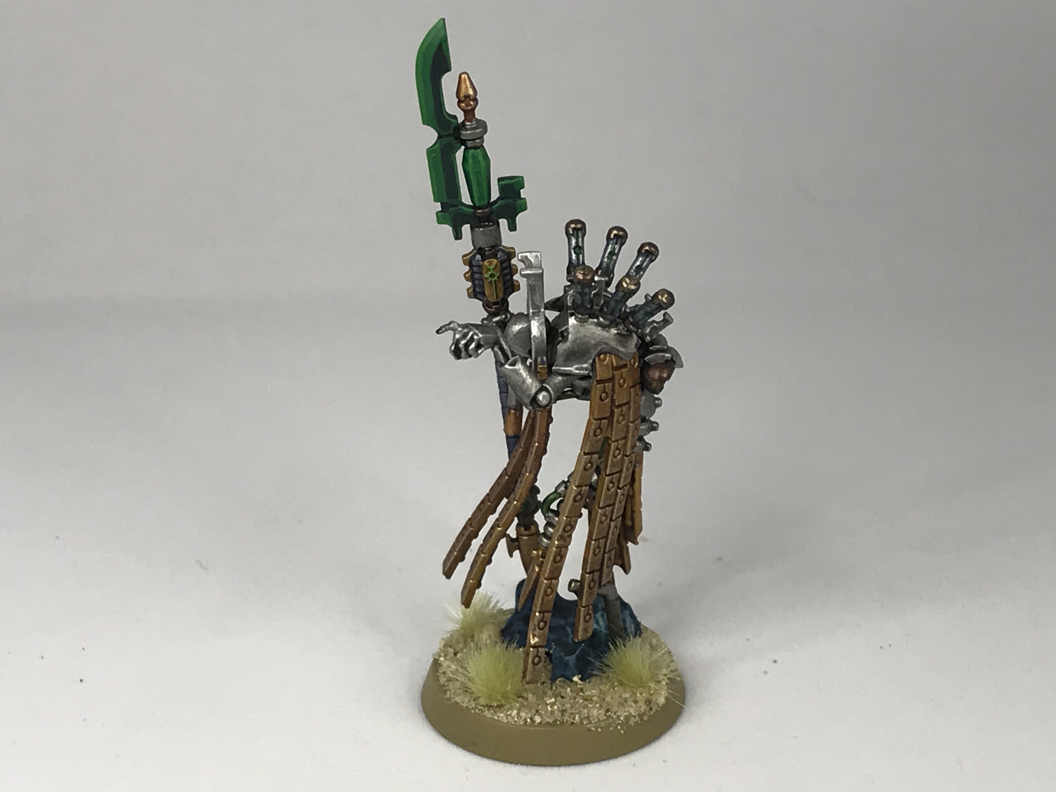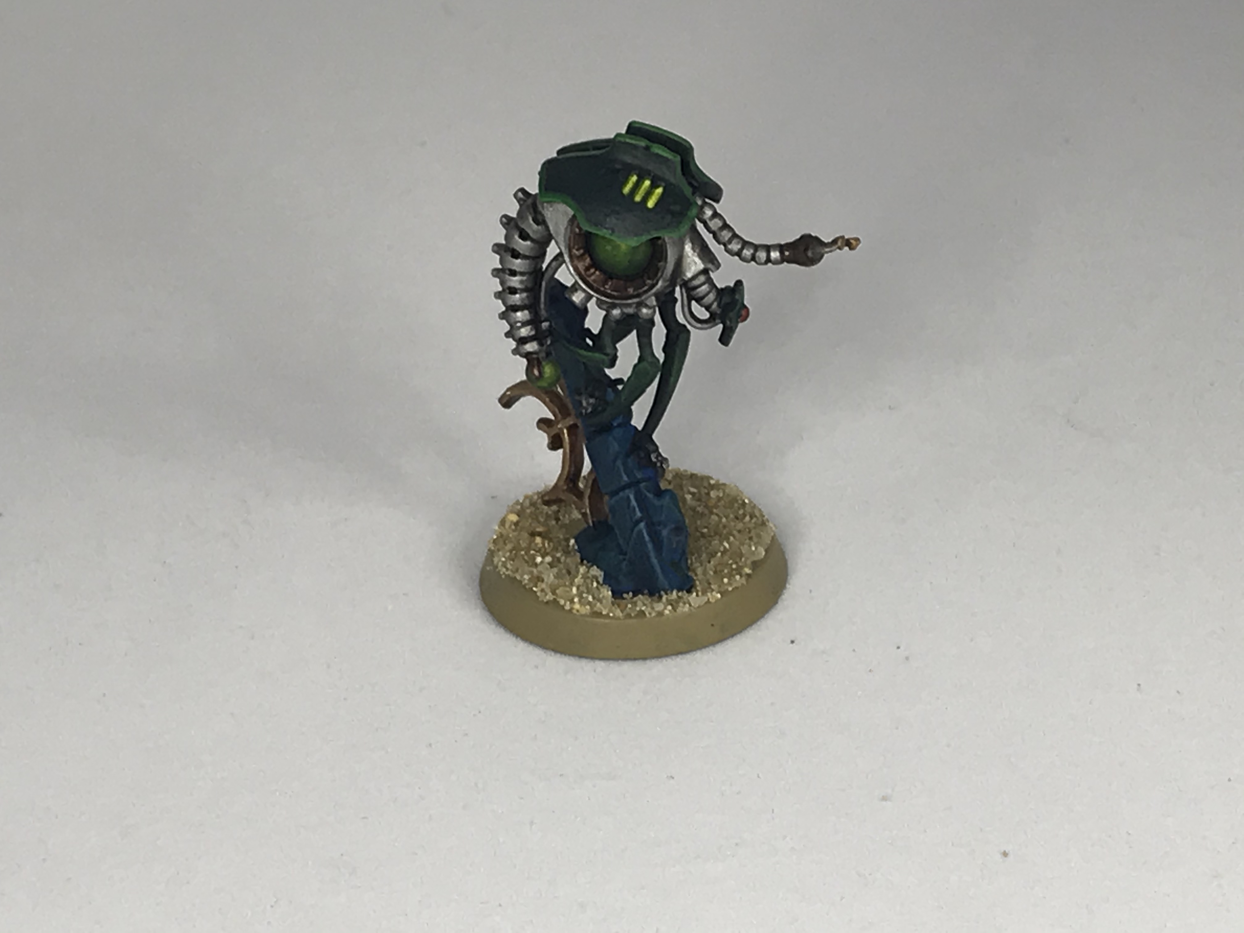 The only new thing here is the eyes - these get a coat of Stormhost Silver followed by a thinned coat of Iyanden Yellow Contrast followed by an even more thinned coat of Ork Flesh Contrast, which gives a nice vibrant glowing green. This gets re-used on the glowing green cables on the next few models.